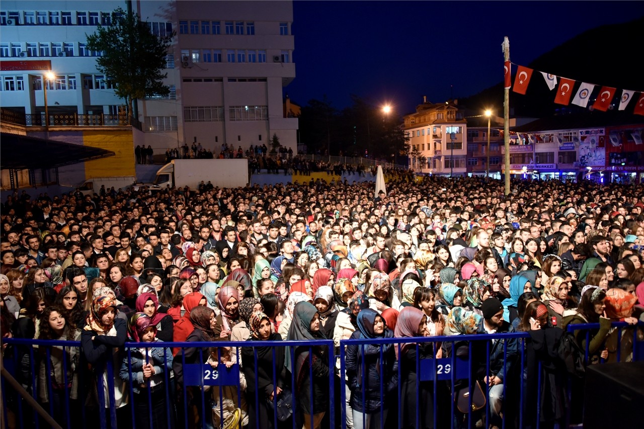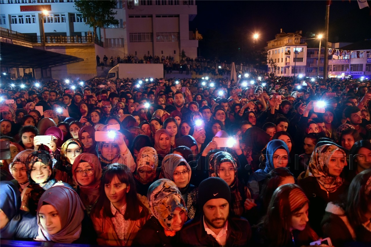 Zafer Meydanında düzenlenen konseri büyük bir çoğunluğu Gümüşhane Üniversitesi öğrencileri ve gençlerden oluşan kalabalık bir kitle izlerken, grubun seslendirdiği hemen tüm parçalara alanda bulunanlar eşlik etti.