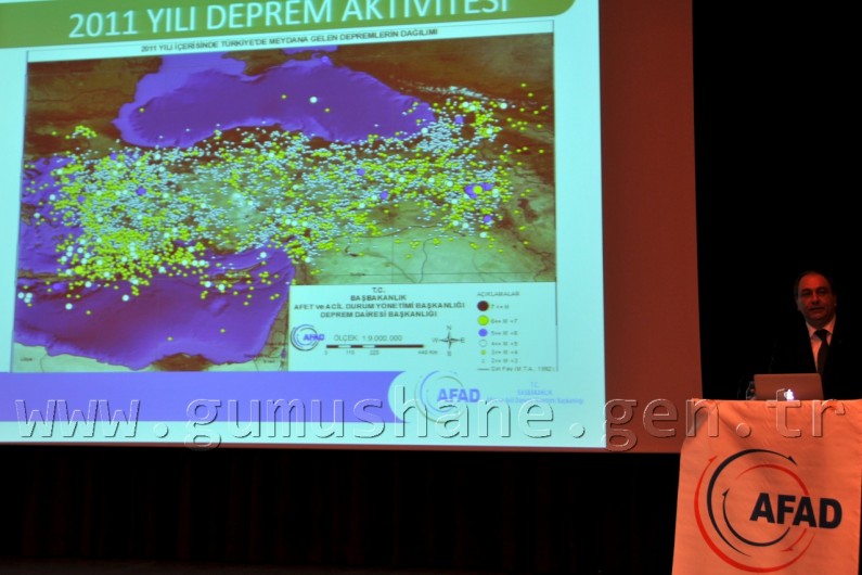 Toplantıda daha sonra Jeofizik Mühendisi Güler Yenilmez tarafından Gümüşhane'nin depremselliği ve olası deprem senaryosu hakkında, AFAD Deprem Dairesi Başkanlığı Deprem Risk Yönetimi Grup Başkanı Demir Akın ise risk azaltılma planları hakkında bilgi verdi.