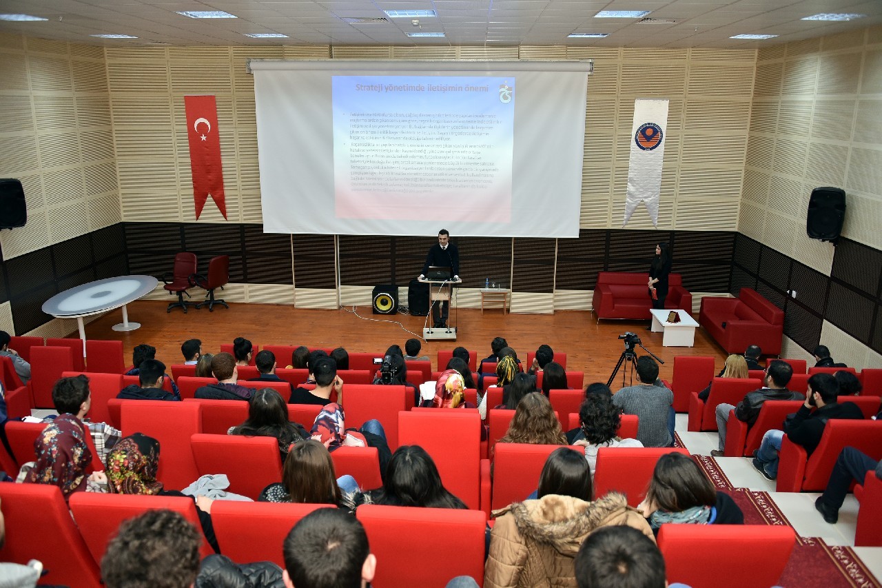 Trabzonspor Medya ve İletişim Sorumlusu Nuri Bekar, Gümüşhane Üniversitesinde düzenlenen 'Futbol ve İletişim - Trabzonspor' konulu söyleşiye katılarak tecrübelerini geleceğin iletişimcilerine aktardı.