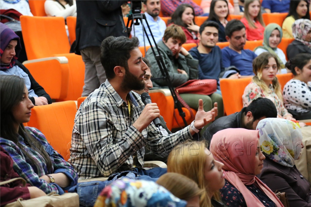 Gümüşhane Üniversitesi Mühendislik ve Doğa Bilimleri Fakültesi Çok amaçlı Salonunda yapılan söyleşiye Gümüşhane Üniversitesi Rektörü Prof. Dr. İhsan Günaydın, Rektör Yardımcısı ve Gümüşhane Üniversitesi İletişim Fakültesi Dekanı Prof. Dr. Celalettin Vatandaş, İletişim Fakültesi öğretim üyeleri ile öğrenciler katıldı.