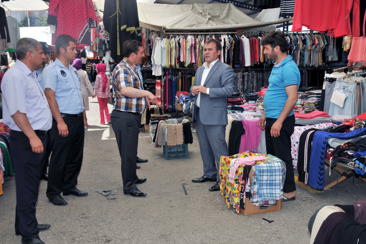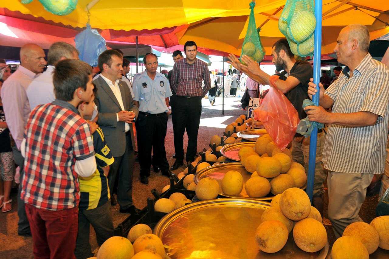 Beraberinde Zabıta Müdürü Halit Şişman, Temizlik İşleri Müdürü İsa Şanlıtürk ve Fen İşleri Müdürü Serkan Öztürk ile birlikte pazaryeri esnafını ziyaret eden Başkan Çimen, esnaf ve alışveriş yapan vatandaşlarla sohbet etti.