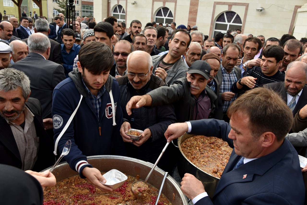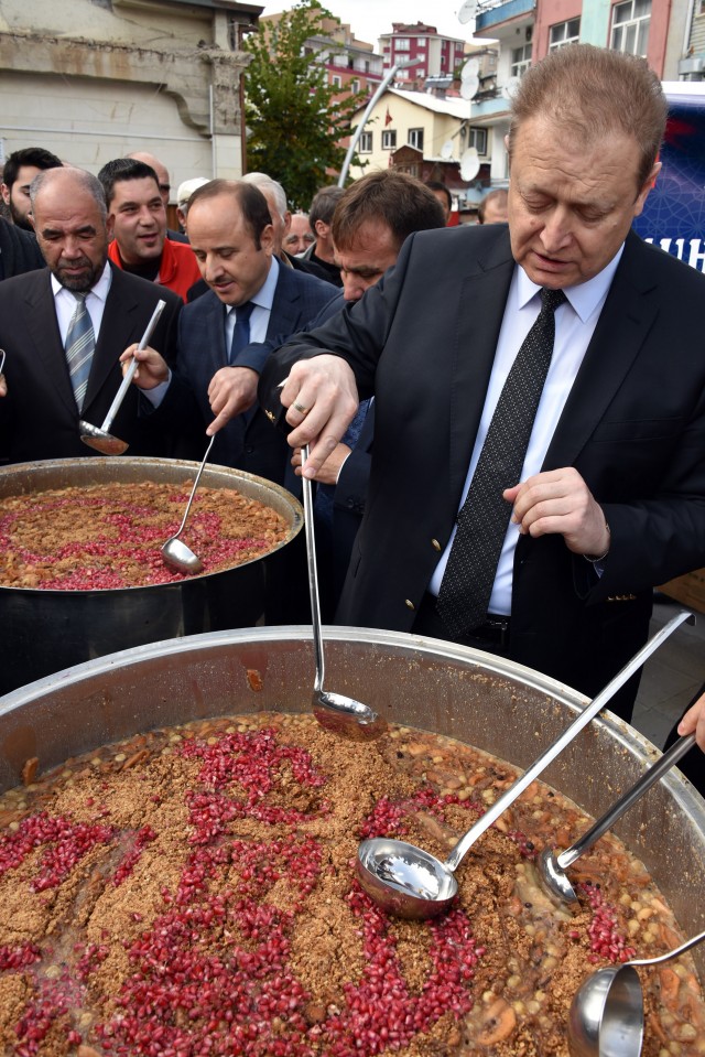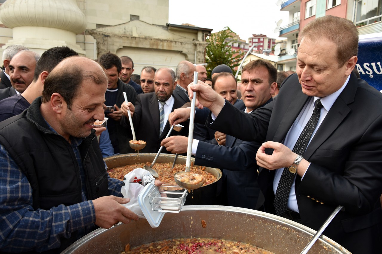 Konuşmaların ardından Vali Yavuz ve Başkan Çimen vatandaşlara kendi elleriyle aşure ikram etti.