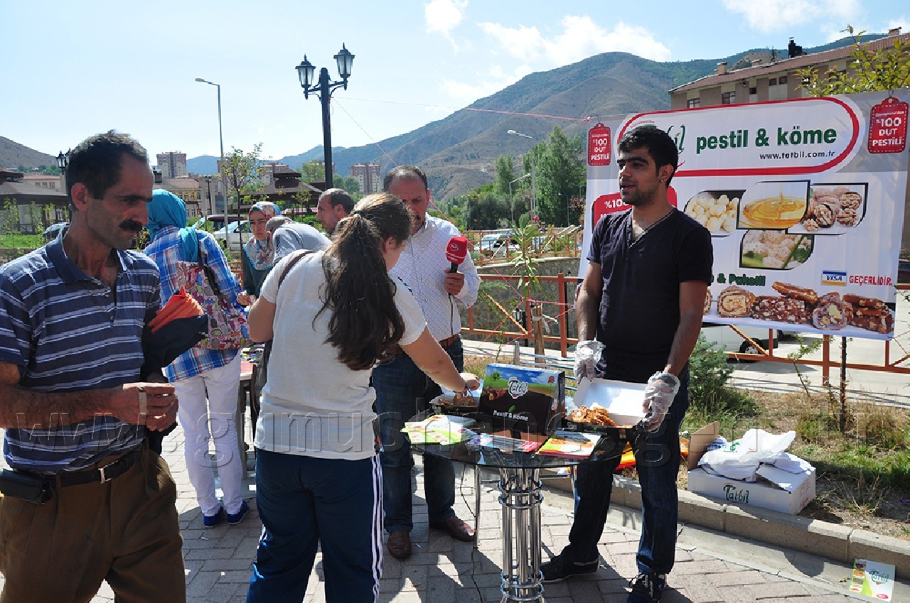 Şehirde pestil-köme sektörüne yeni ve farklı bir soluk getiren Tatbil Pestil ve Köme, Gümüşhane Üniversitesi Meslek Yüksekokulu önünde stant açarak kayda gelen öğrencilere pestil ve köme ikramında bulunuyor.