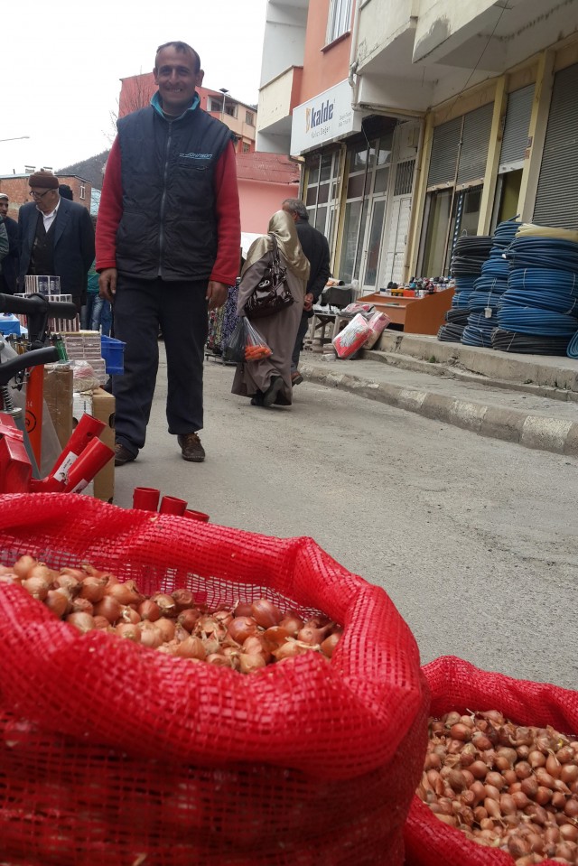 Cemrelerin düşmesi ve hava sıcaklıklarının artırmasının ardından Gümüşhane'nin en düşük rakımlı ilçesi olan Kürtün ilçesinde, ilk ekilecek ürünlerden olan soğan sıskaları pazardaki yerini aldı.