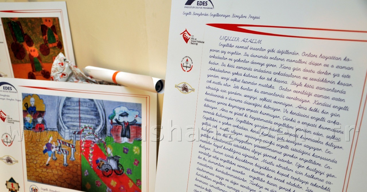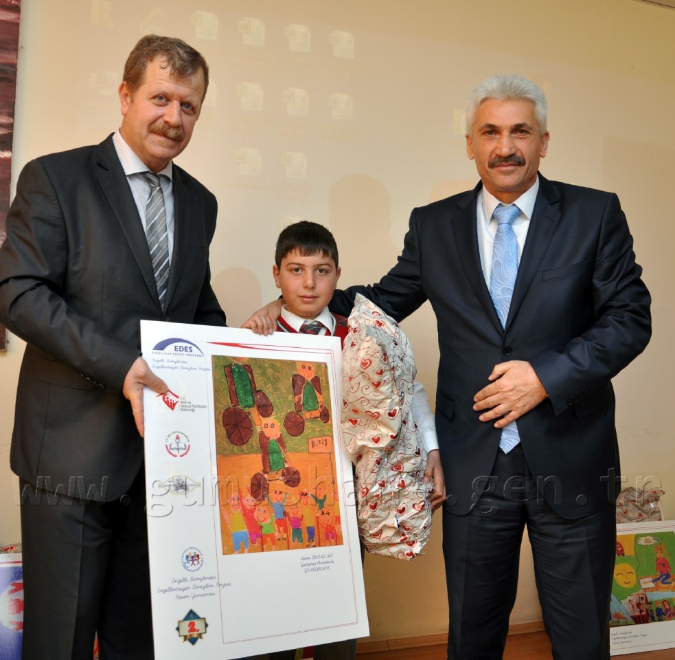 Gümüşhane İl Milli Eğitim Müdürlüğünün Engelliler Destek Programı (EDES) kapsamında yürüttüğü “Engelli Bireylerden Engellenmeyen Bireylere” projesinin resim ve kompozisyon yarışmalarında başarılı olan öğrencilere ödülleri törenle verildi.