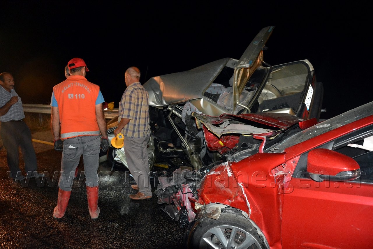 Edinilen bilgiye göre bugün saat 21.00 sıralarında meydana gelen kaza Gümüşhane-Kelkit karayolunun Ünlüpınar Beldesi yol ayrımında gerçekleşti. Kelkit’ten Gümüşhane istikametinde giden İsa Yılmaz (33) yönetimindeki 61 KC 424 plakalı otomobil, sürücüsünün direksiyon hakimiyetini kaybetmesi sonucu kontrolden çıkarak karşı yönden gelen M.B yönetimindeki 61 VS 242 plakalı otomobille çarpıştı.
