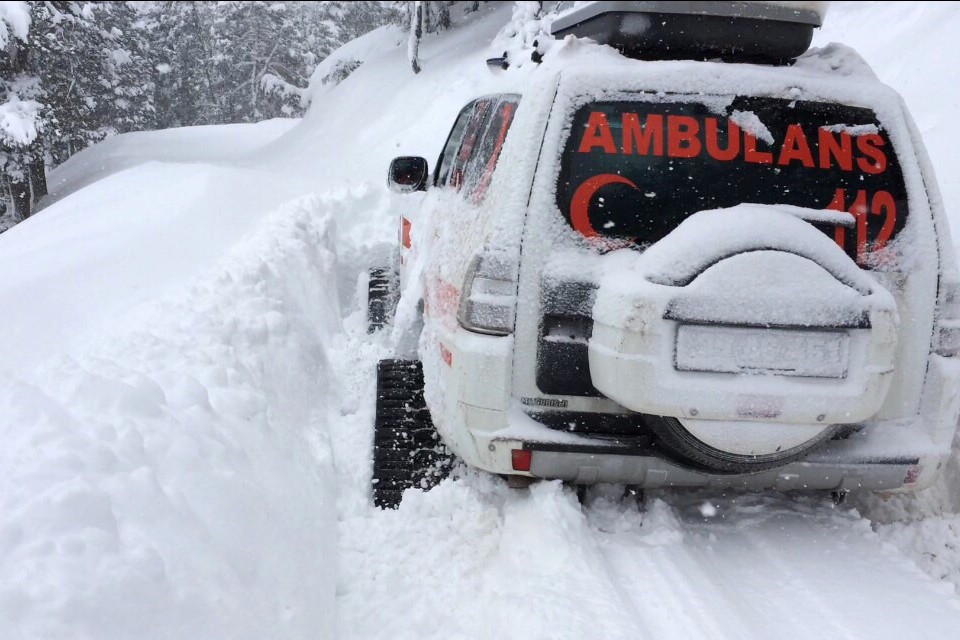 Edinilen bilgiye göre iki gün önce hastaneden taburcu edilen kalp hastası Tekin Kurt’un (70) hastalığının tekrar nüksettiği ihbarını alan 112 ekipleri, paletli ambulans ile bölgeye ulaşmak için yola çıktı. Demirkapı zirvesinin ardından köy yoluna doğru yer yer 1,5 metreyi bulan kar kalınlığı nedeniyle zaman zaman zorluklar çeken ambulans köye ulaşıp hastayı aldıktan sonra bu kez de yola düşen büyük kaya parçalarıyla uğraşmak zorunda kaldı.
