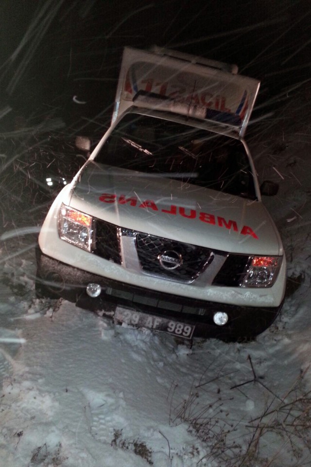 Öte yandan yoğun kar yağışının ardından güç şartlarda hizmet veren Kelkit 112 servisi ise ilçeye 46 kilometre uzaklıktaki Güzyurdu köyünde ki bir vakaya giderken kara saplandı.