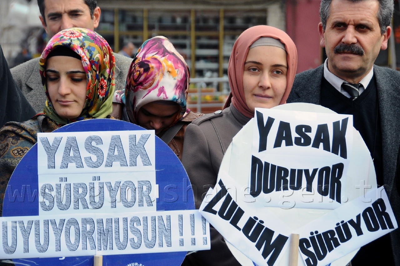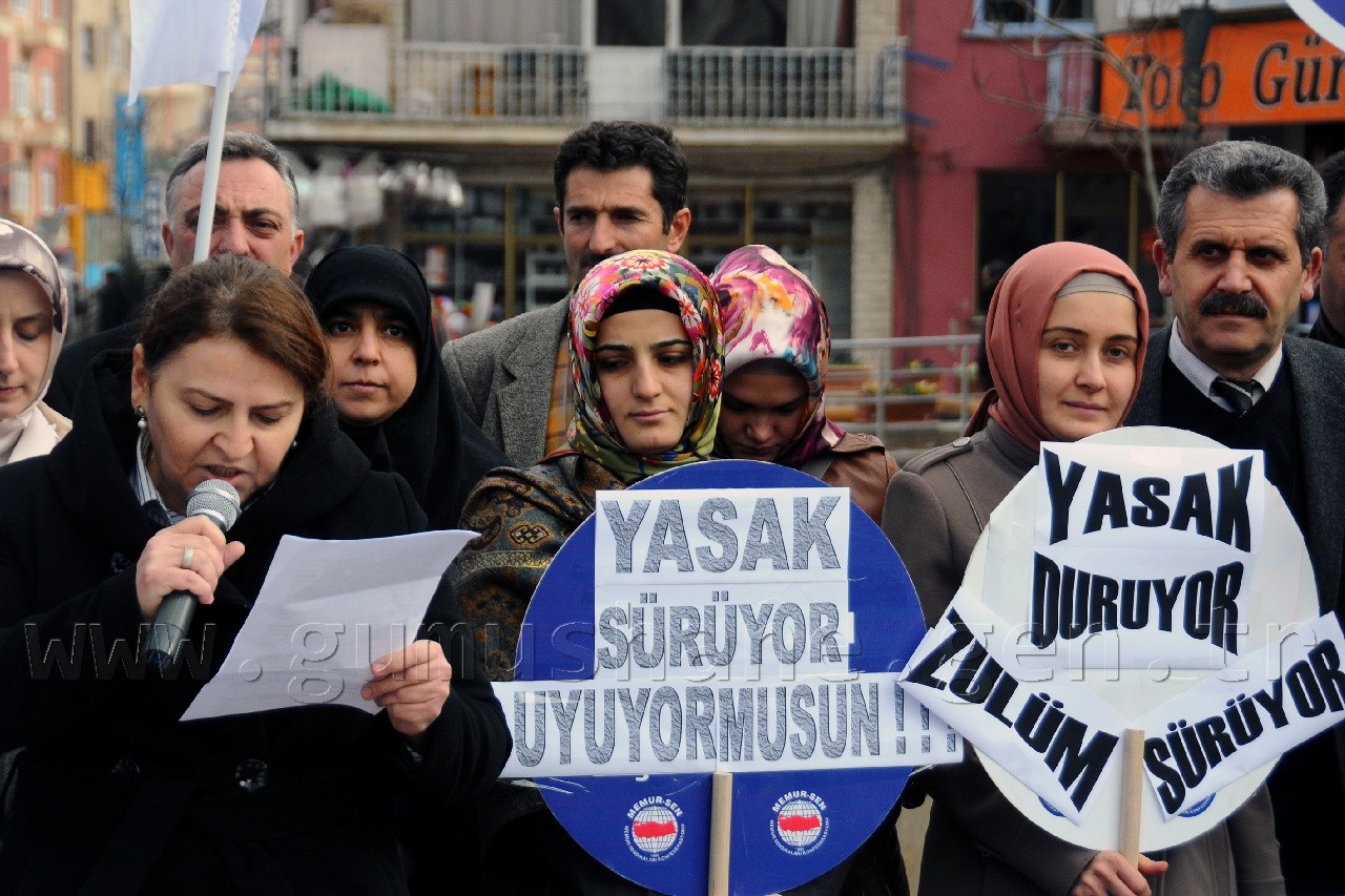 Memur-Sen ve Eğitim-Bir-Sen İl Temsilcisi Veli Ağaç, sendika üyeleri ve başörtülü öğretmenlerin katıldığı açıklamada Bilgin, “Bu ülkeyi bizim için yaşanmaz kılan yasakların kaldırılması talebimizi haykırmak için toplandık” dedi.