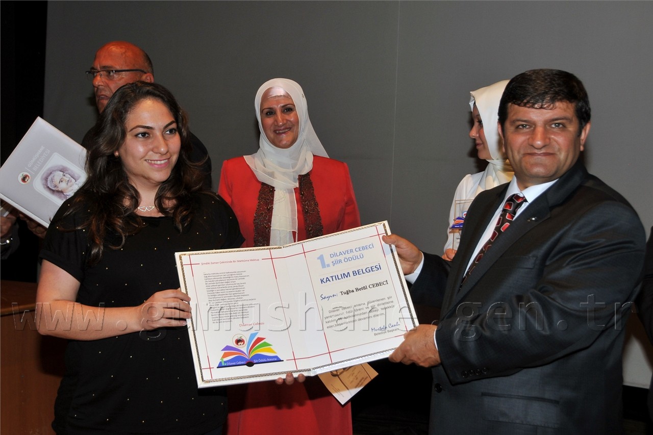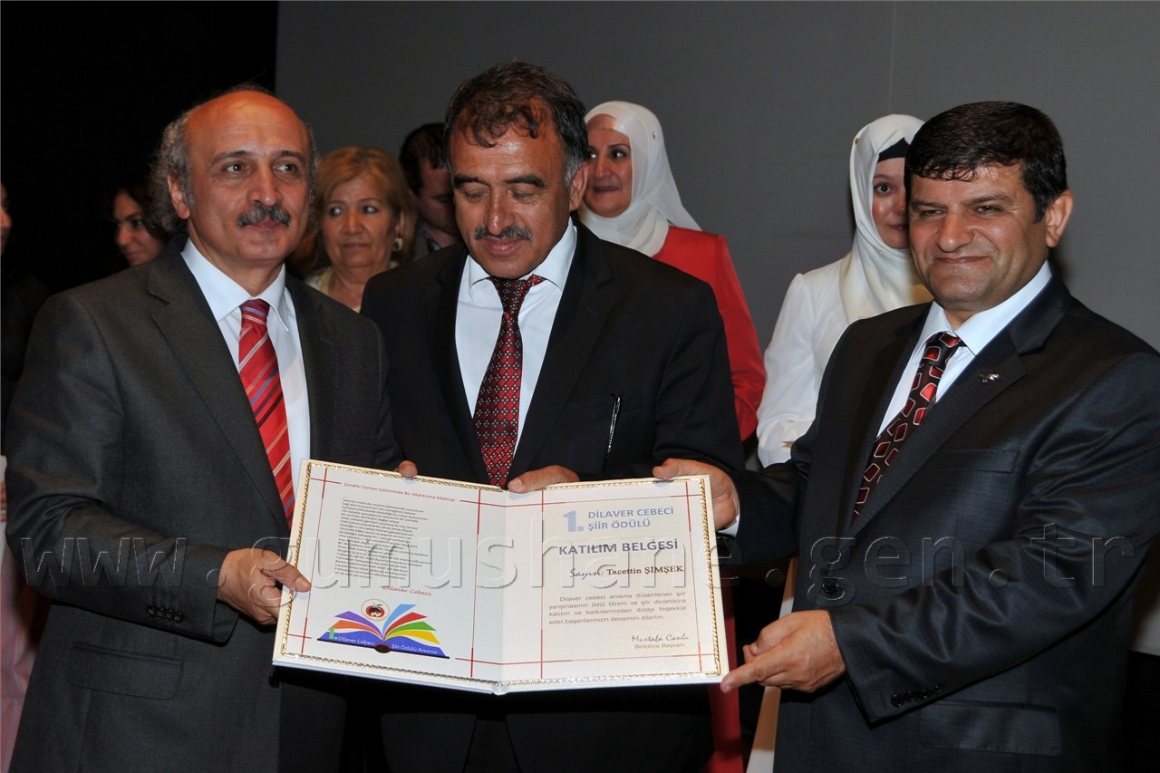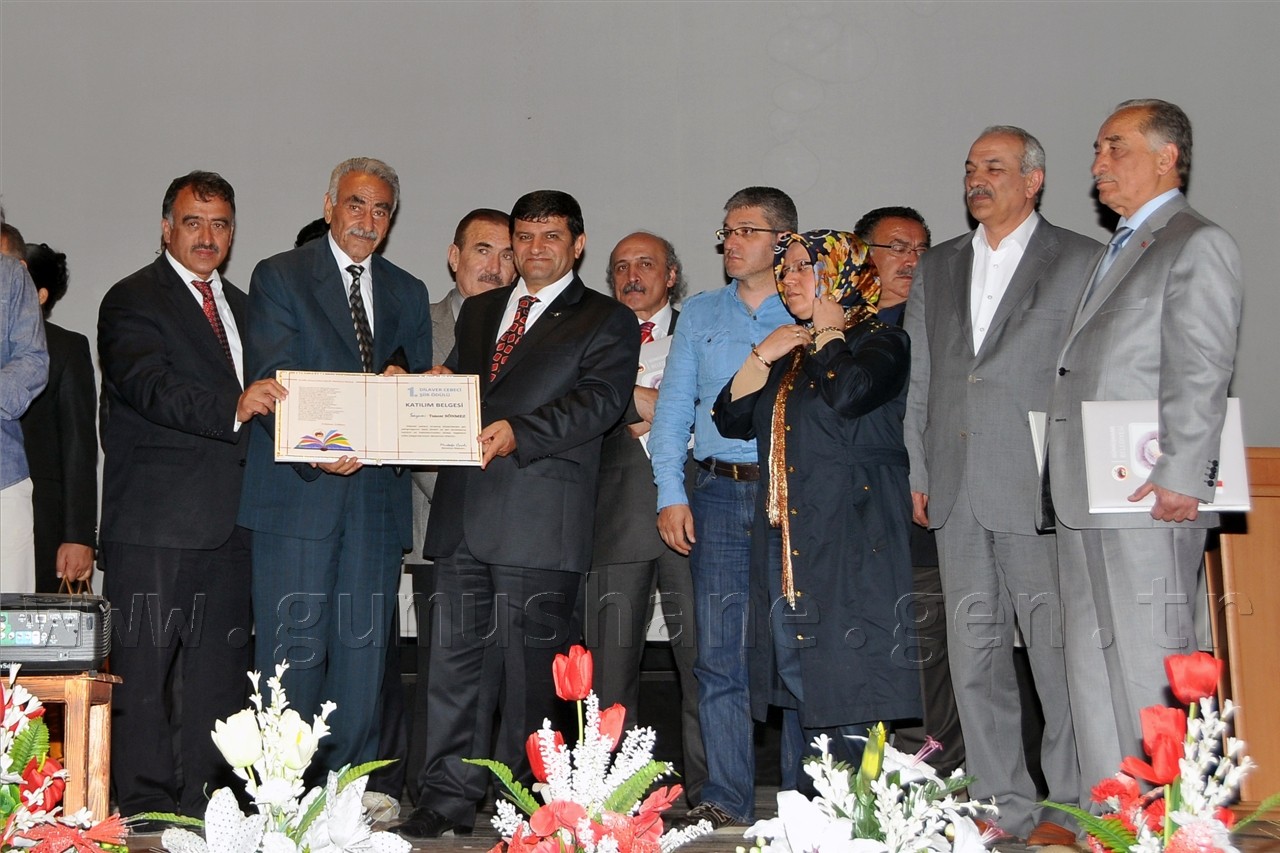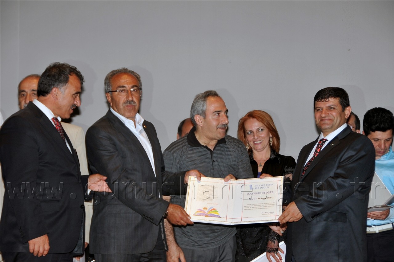 Gümüşhanelilerin şiire doyduğu programda daha sonra Nurullah Genç, Bestami Yazgan, Günerkan Aydoğan, Ömer Faruk Beyceoğlu, Tacettin Şimşek, Özcan Ünlü ve Turan Tuğlu’dan oluşan seçici kurulun değerlendirmesi sonucu Ateş-i Aşk ve Ölüm isimli şiiri ile birinci olan Sevim Yakıcı’ya, Sessiz İnfilâk isimli şiiriyle ikinci olan Nuray Alper’e, İksir ve Cezbe isimli şiiriyle üçüncü olan Yaşar Bayar’a ve mansiyon ödülüne layık görülen Ozan Taşdemir, Mahmut Nacar, Hakan İlhan Kurt’a ödülleri ve plaketleri Vali Dr. Yusuf Mayda, Belediye Başkanı Mustafa Canlı ve Dilaver Cebeci’nin eşi Ayla Cebeci tarafından verildi.