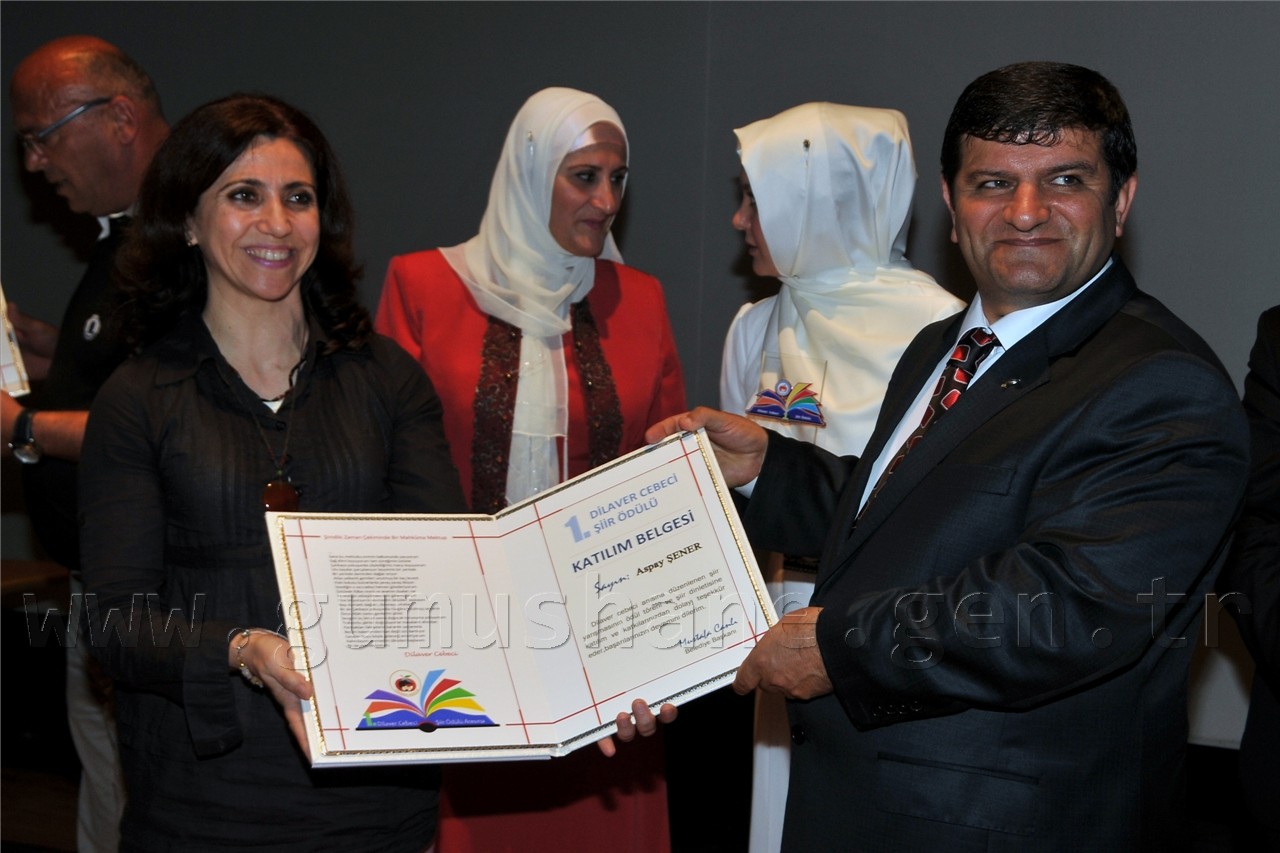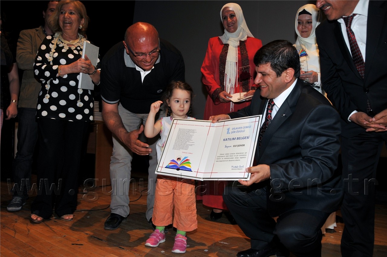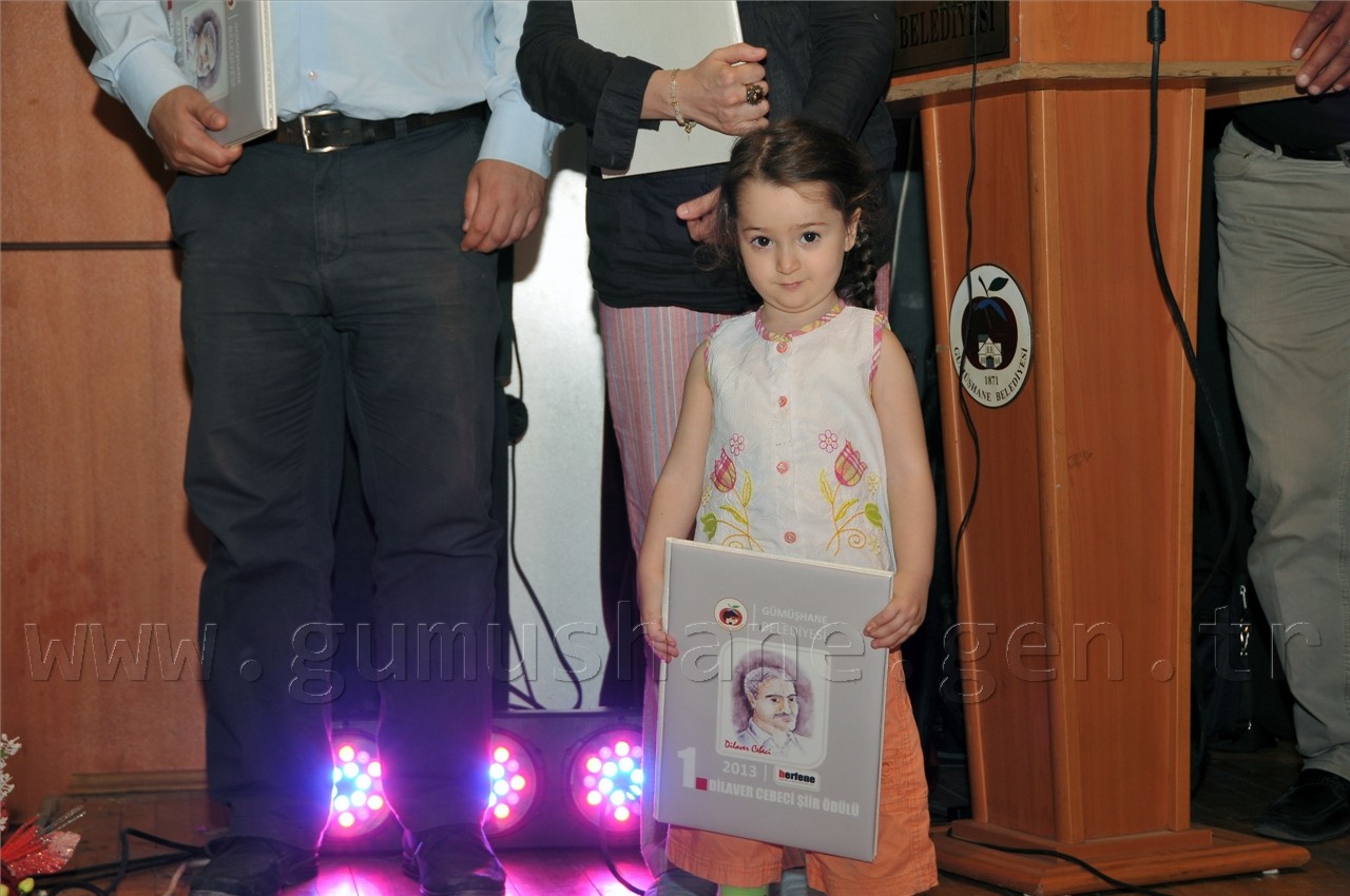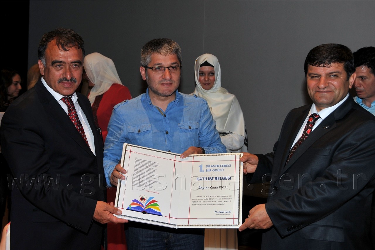 Gümüşhanelilerin şiire doyduğu programda daha sonra Nurullah Genç, Bestami Yazgan, Günerkan Aydoğan, Ömer Faruk Beyceoğlu, Tacettin Şimşek, Özcan Ünlü ve Turan Tuğlu’dan oluşan seçici kurulun değerlendirmesi sonucu Ateş-i Aşk ve Ölüm isimli şiiri ile birinci olan Sevim Yakıcı’ya, Sessiz İnfilâk isimli şiiriyle ikinci olan Nuray Alper’e, İksir ve Cezbe isimli şiiriyle üçüncü olan Yaşar Bayar’a ve mansiyon ödülüne layık görülen Ozan Taşdemir, Mahmut Nacar, Hakan İlhan Kurt’a ödülleri ve plaketleri Vali Dr. Yusuf Mayda, Belediye Başkanı Mustafa Canlı ve Dilaver Cebeci’nin eşi Ayla Cebeci tarafından verildi.