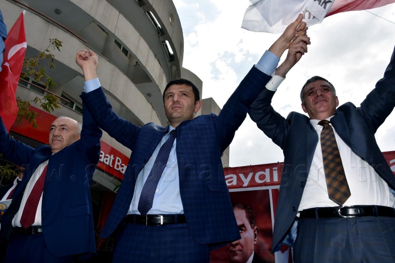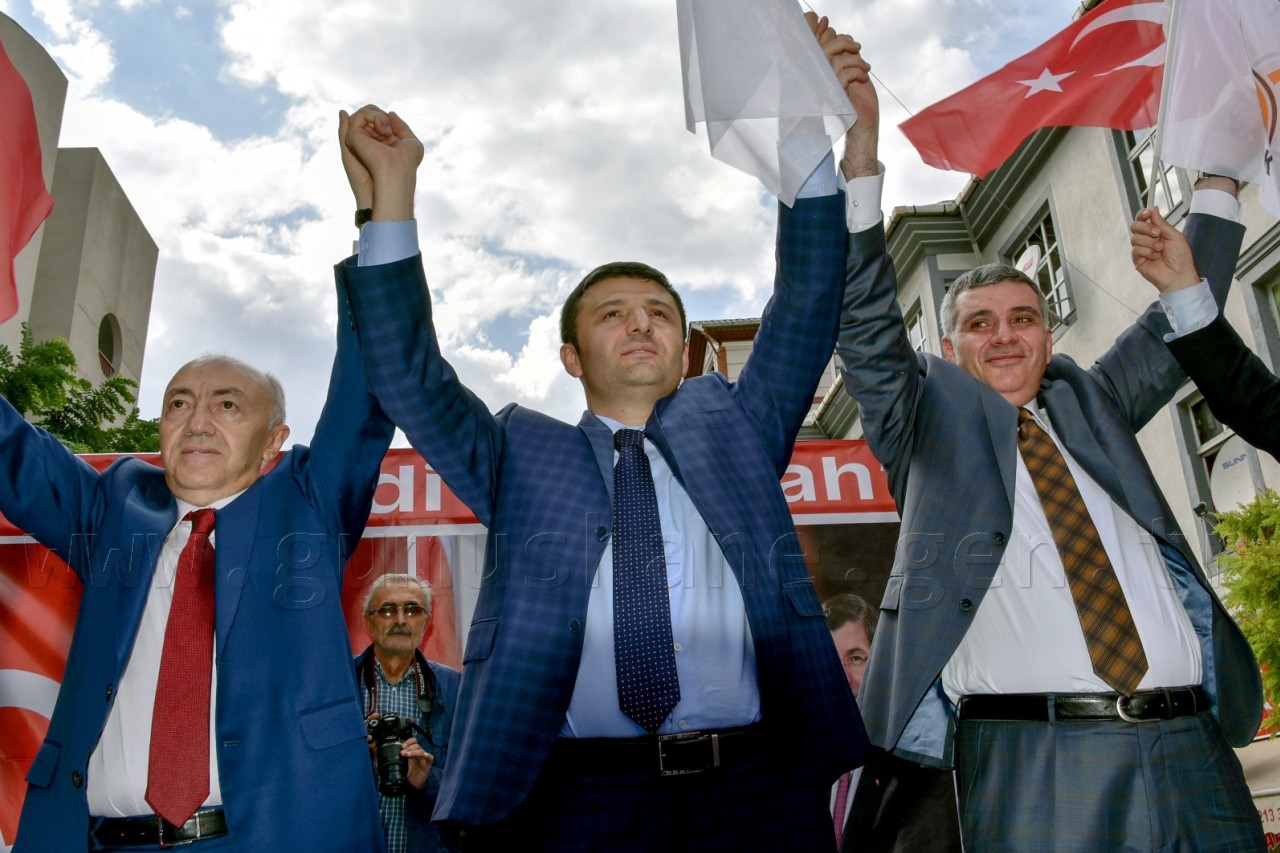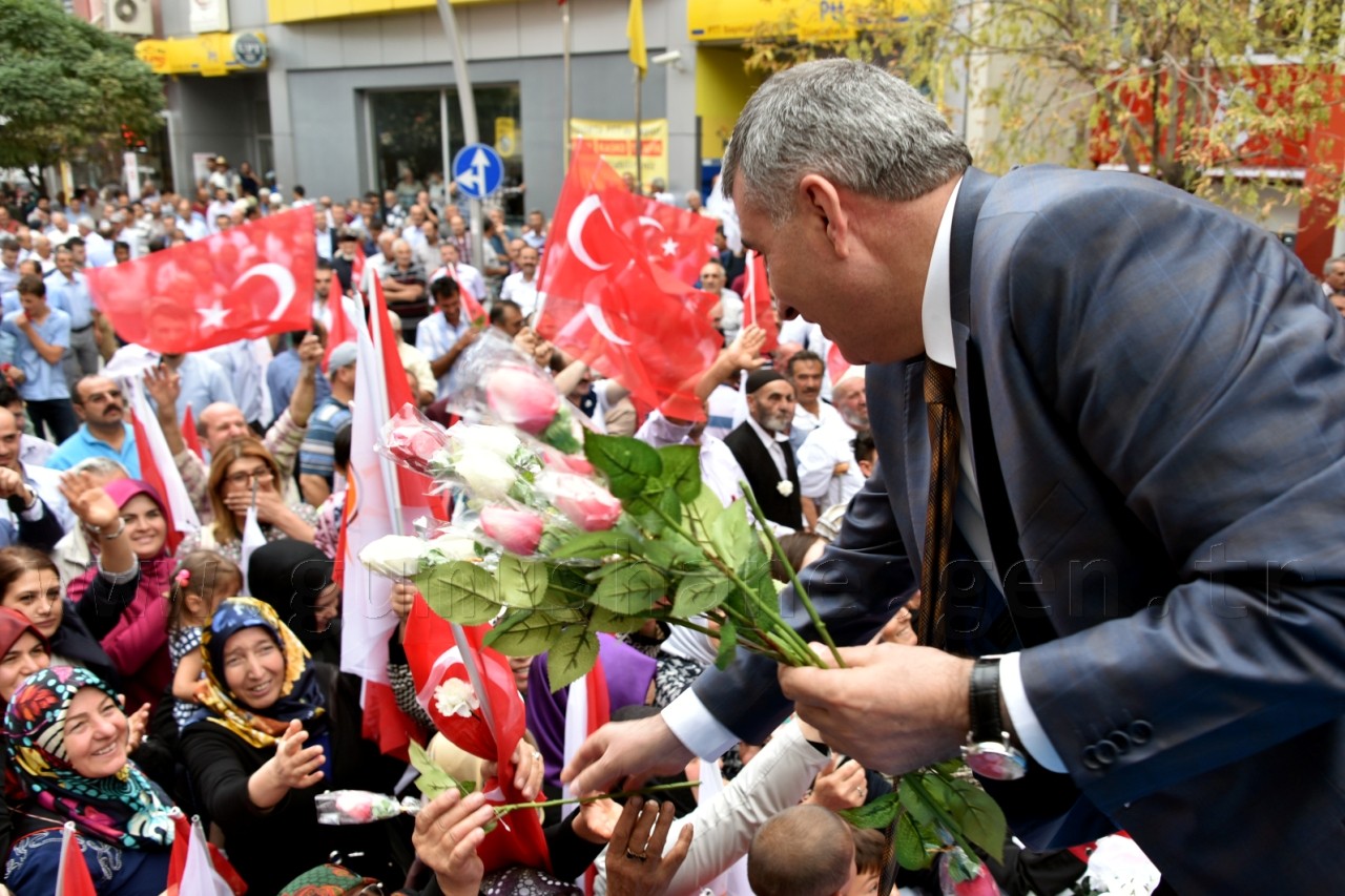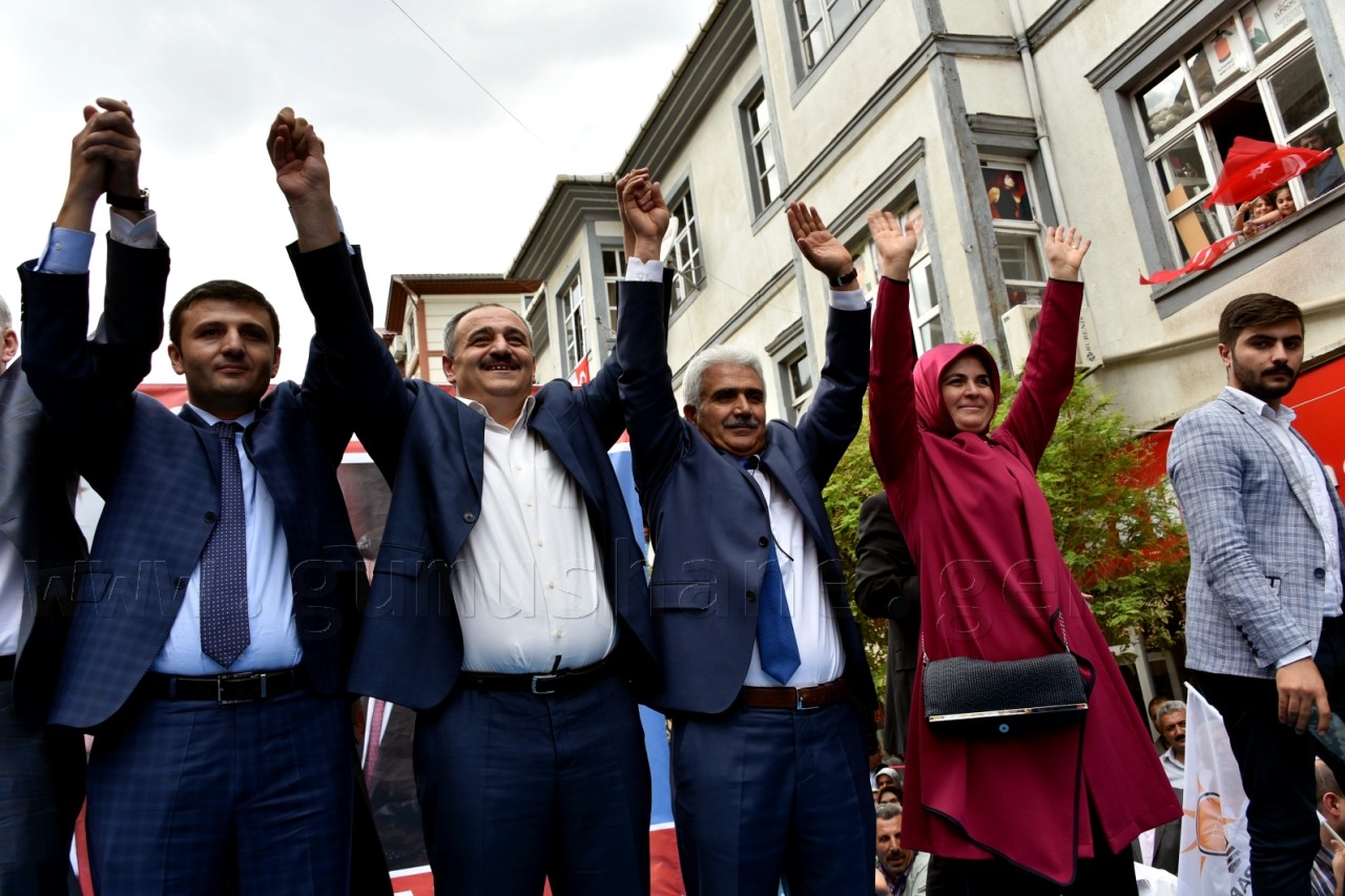Kral Park tesisleri önünde yaklaşık 400 araçla gerçekleşen konvoyla şehre giriş yapan Milletvekili adayları, daha sonra Atatürk Caddesinde bulunan parti binası önündeki platformdan halka seslendi.