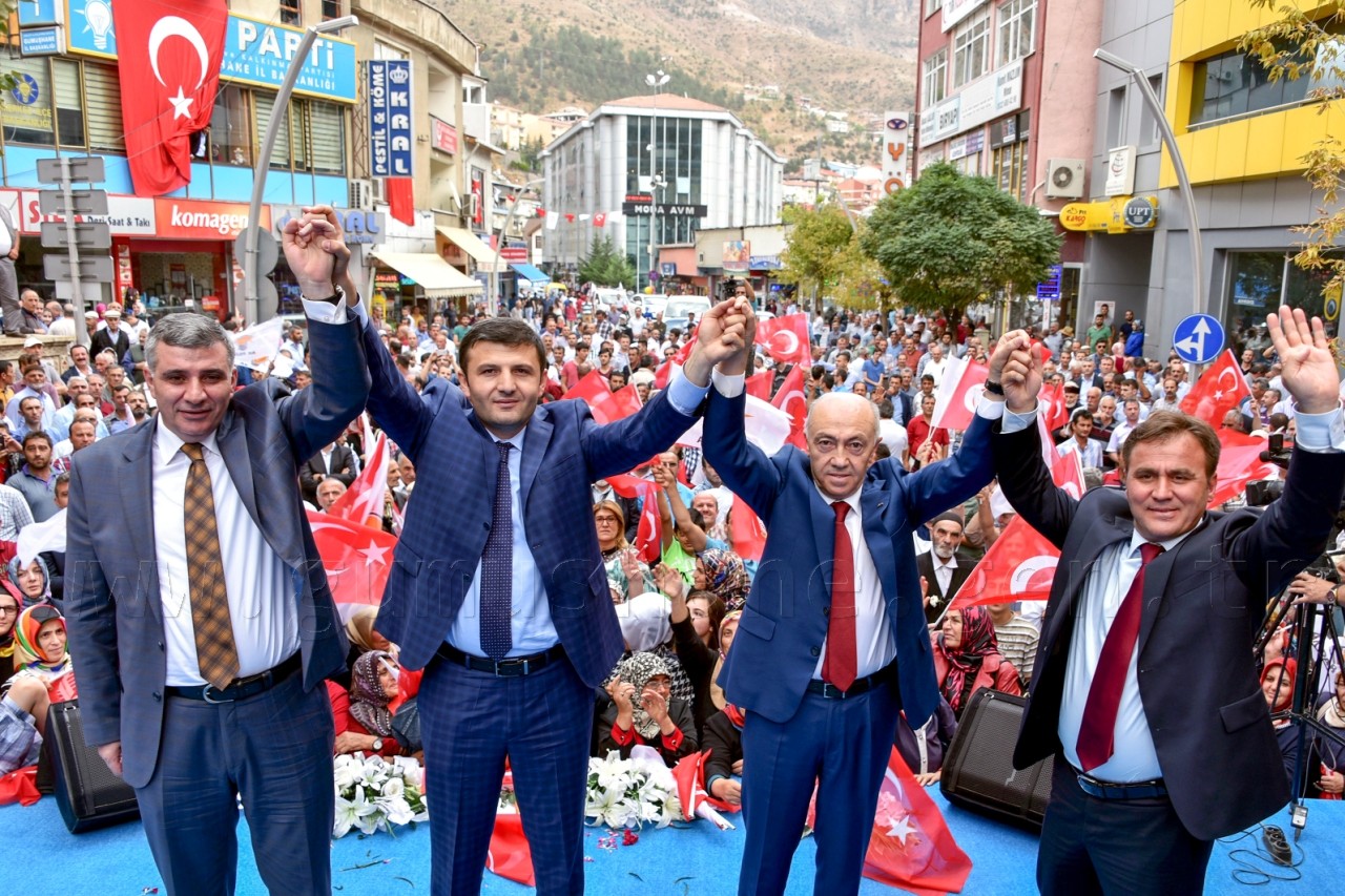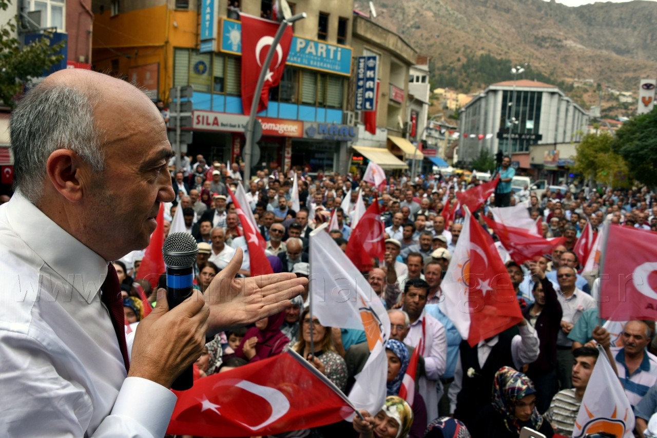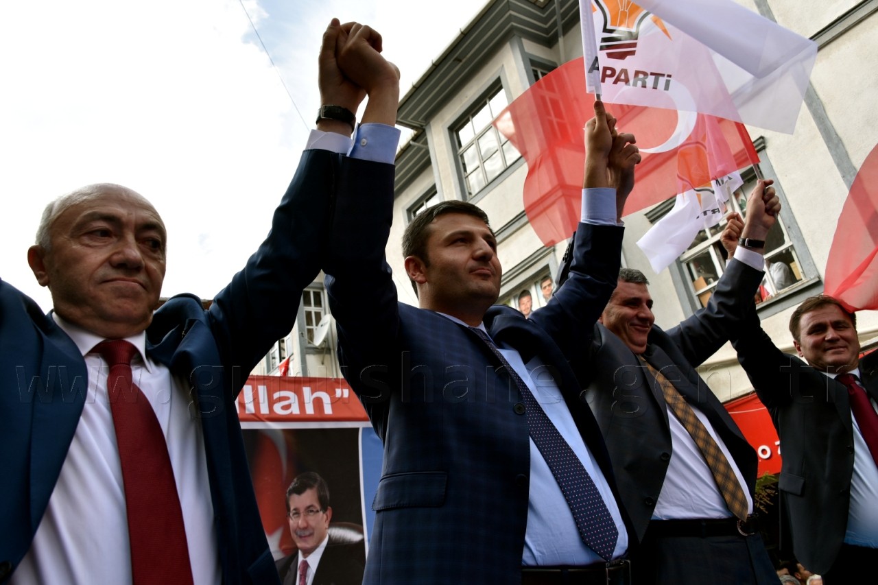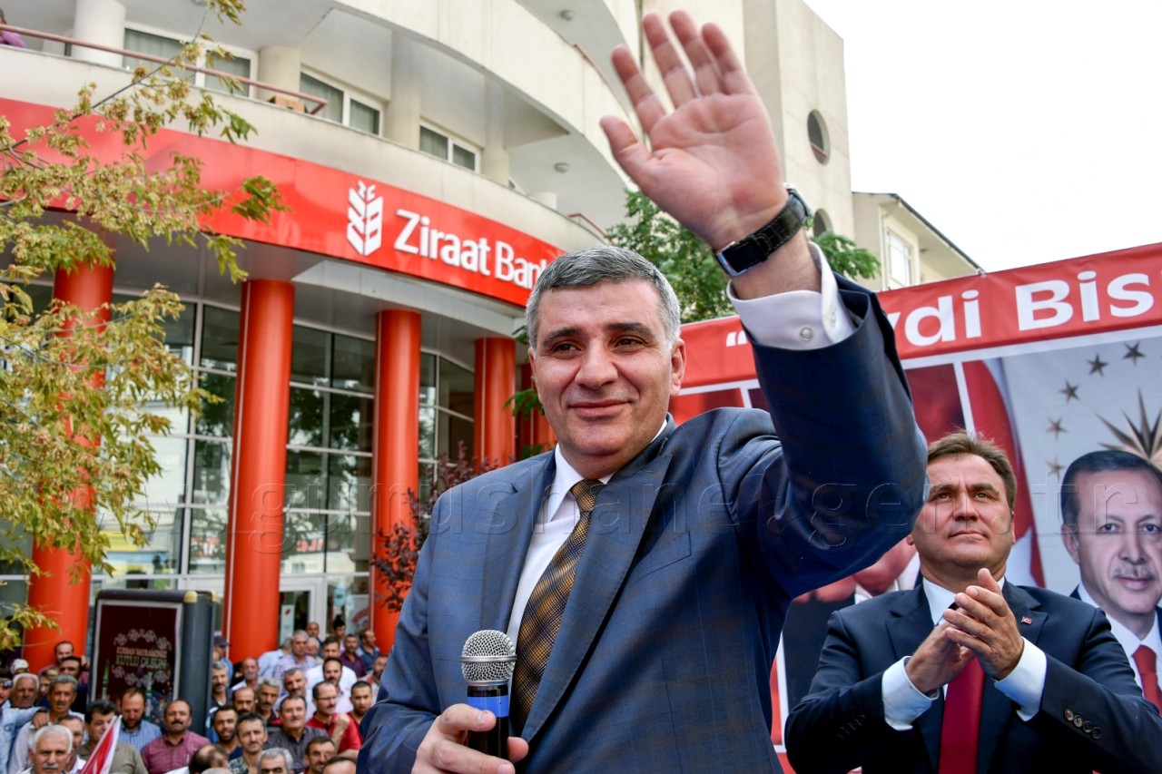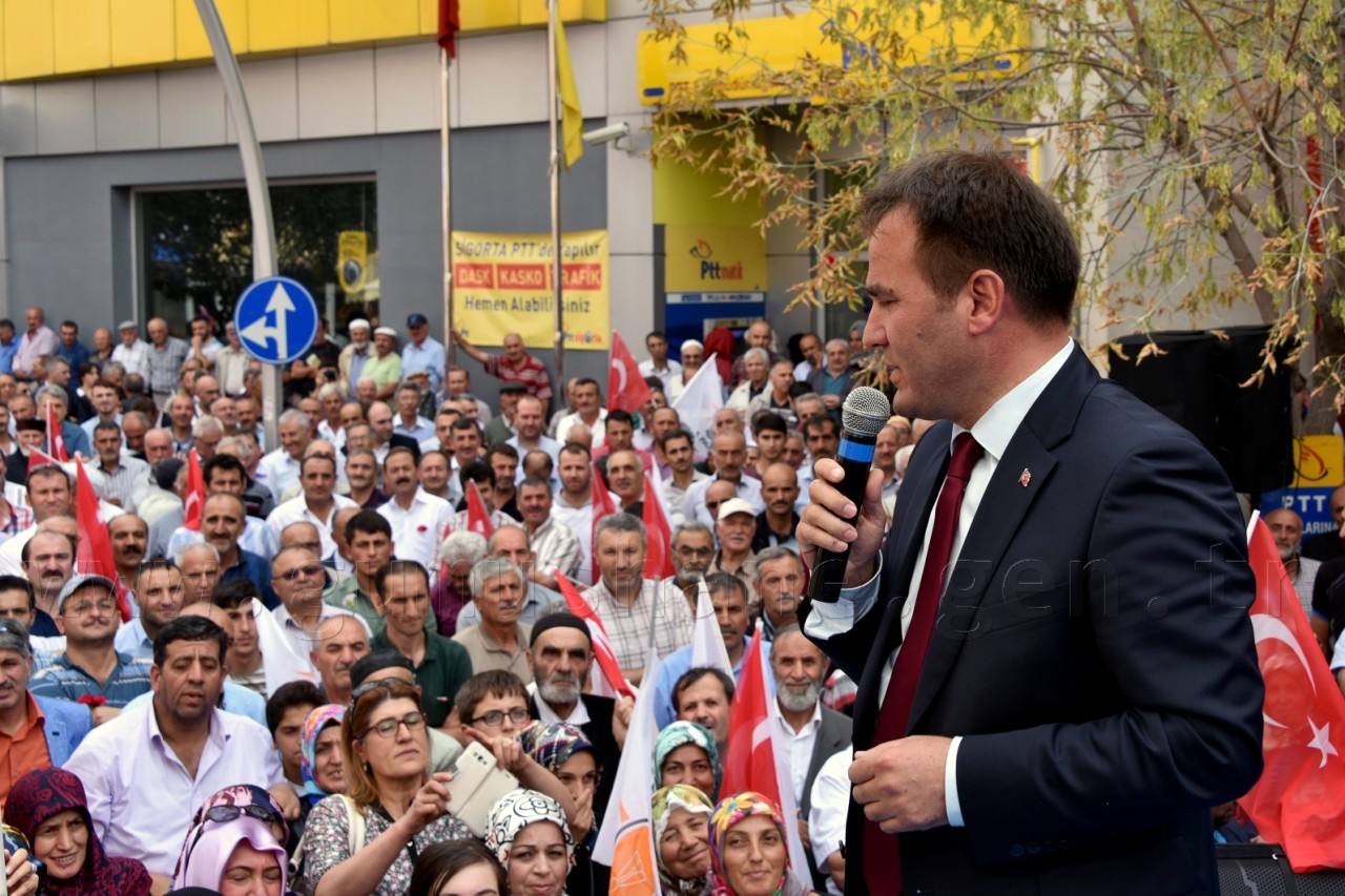Kral Park tesisleri önünde yaklaşık 400 araçla gerçekleşen konvoyla şehre giriş yapan Milletvekili adayları, daha sonra Atatürk Caddesinde bulunan parti binası önündeki platformdan halka seslendi.