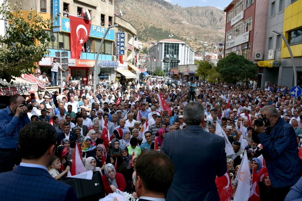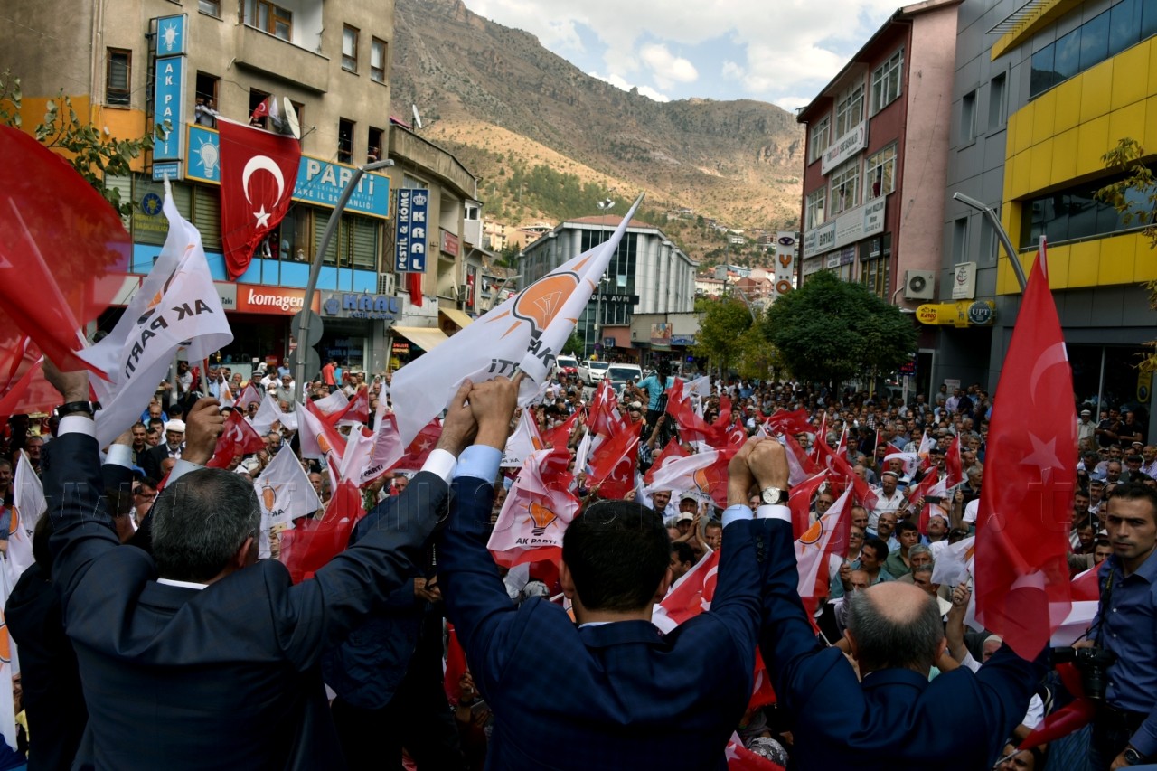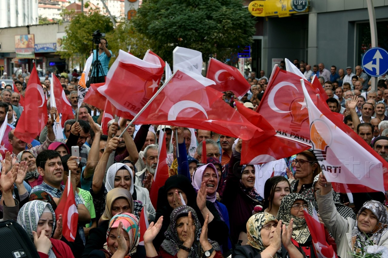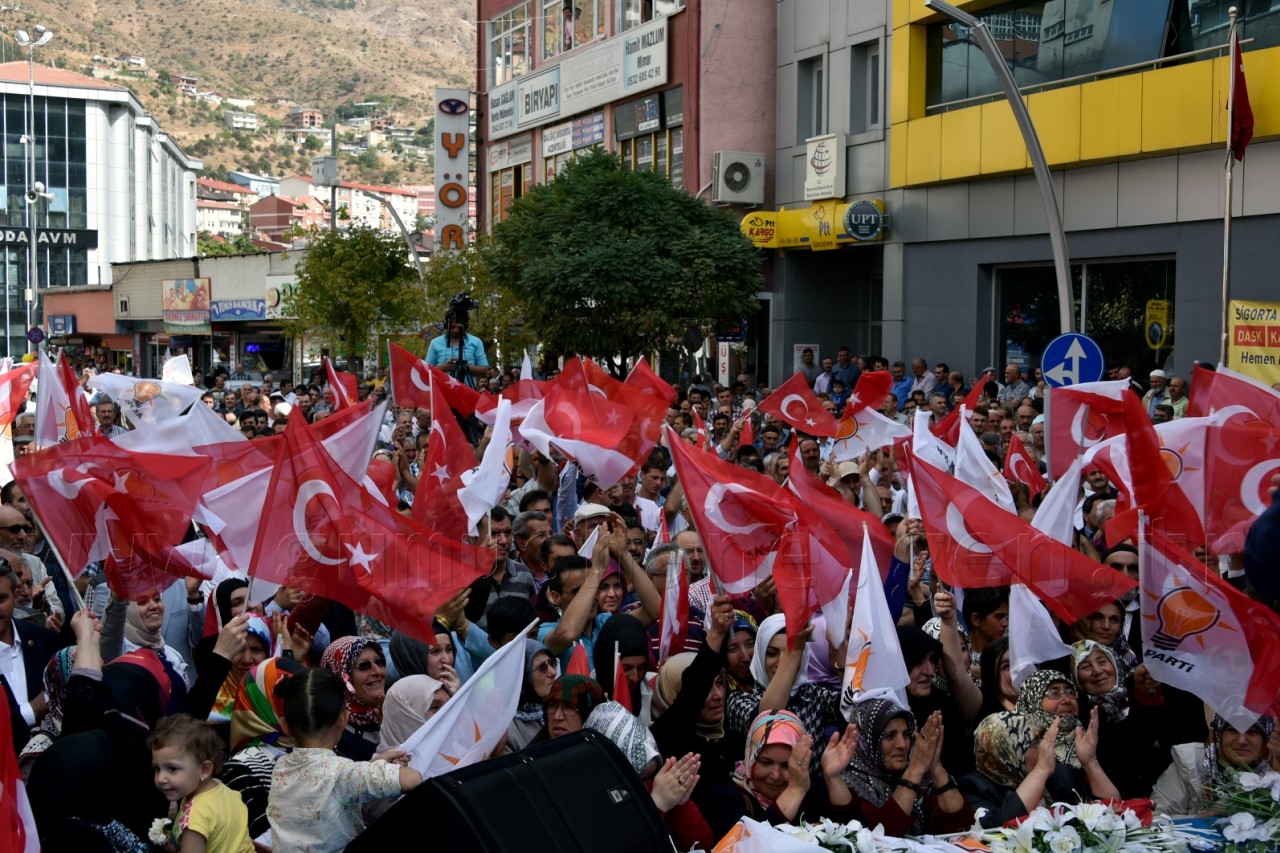 Kral Park tesisleri önünde yaklaşık 400 araçla gerçekleşen konvoyla şehre giriş yapan Milletvekili adayları, daha sonra Atatürk Caddesinde bulunan parti binası önündeki platformdan halka seslendi.