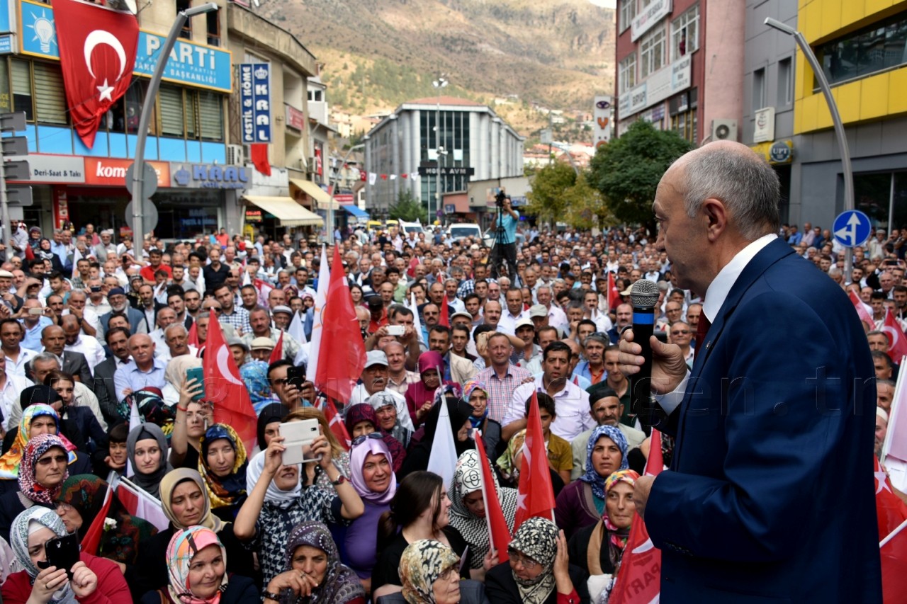 Türkiye’nin güçlü olmaması halinde dünya üzerindeki mazlum halkların ayağa kalkamayacağına vurgu yapan ve 1 Kasım seçimlerinin bu yüzden çok önemli olduğunun altın ıçizen Akgül, “Haydi Bismillah diyerek yola çıktık. Tekrar bu millet tek başına iktidarı AK Parti’ye vererek mazlum milletlerin geleceğini de kurtaracak. Bugün toplu seferberlik ilan ediyoruz. 3 yıl şehit anaları ağlamasın diye baldıran zehri içtik. 1 Kasım’da bu oyunu bozalım. Eğer dünya 5’ten büyükse, mazlum milletlerin sesi olacaksak güçlü bir şekilde iktidara gelmeliyiz. Gümüşhane’nin hizmete doyacağı günler geliyor. Her sorununuzla ilgilenmeye söz veriyoruz. Artık klasik siyaseti söylemlerden kurtulalım” ifadeleriyle konuşmasını sonlandırdı.