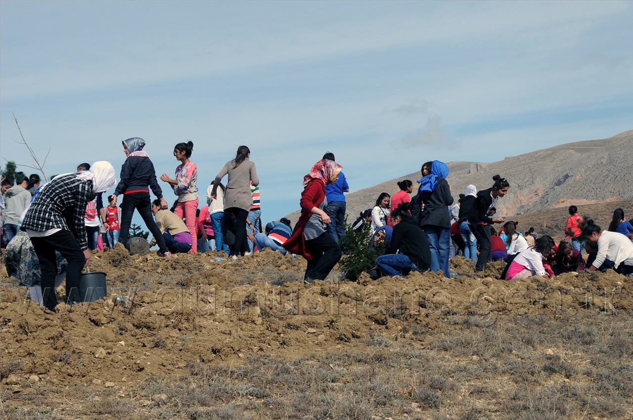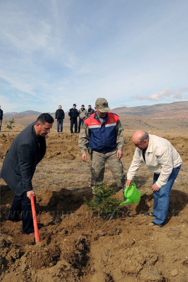 Yapılan konuşmaların ardından oluşturulan alana öğrencilerle birlikte sarıçam, akçaağaç, huş ve ardıçtan oluşan 2 bin dikilerek can suyu verildi.