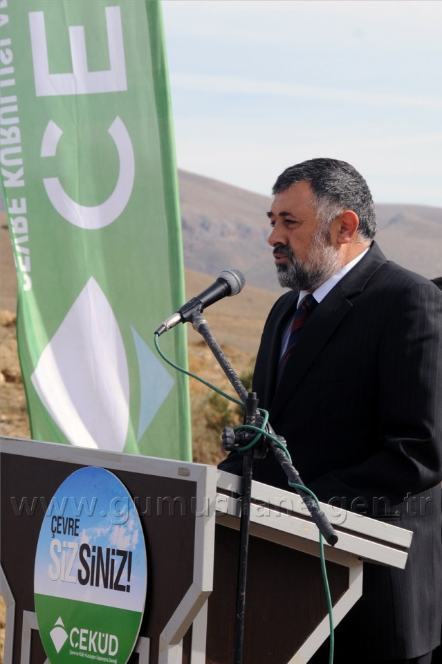 Gümüşhane Orman İşletme Müdürlüğü, Çevre Gönüllüleri Dayanışma Derneği (ÇEKÜD), İstanbul Gümüşhane Dernekler Federasyonu (GÜDEF) ve Bayrampaşa Gümüşhane İl, İlçe ve Köyleri Sosyal Yardımlaşma ve Dayanışma Derneği (BAYGÜDER) ortaklığında “Bir fidan borcun var” kampanyası kapsamında gerçekleştirilen “Ahmet Ziyaüddin Gümüşhanevi Hatıra Ormanı” fidan dikim töreninde ilk olarak ÇEKÜD Genel Sekreteri Cengiz Talha Kömürcü söz aldı.