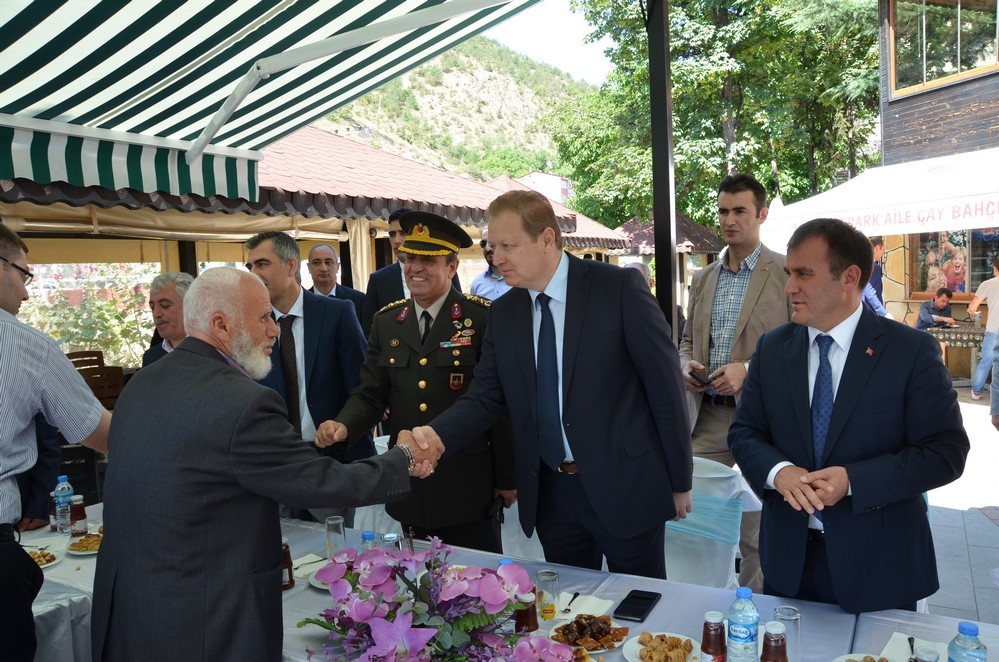 Fatih Parkı’nda gerçekleştirilen bayramlaşma törenine Vali Yücel Yavuz, Gümüşhane Milletvekilleri Doç. Dr. Kemalettin Aydın ve Mustafa Canlı, İl Jandarma Alay Komutan Vekili Albay Hasan Metin, Belediye Başkanı Ercan Çimen, Vali Yardımcısı İsmail Özkan, İl Emniyet Müdürü Orhan Kar, İl Genel Meclisi Başkanı Şerif Bayraktar, kurum müdürleri, siyasi parti temsilcileri, sivil toplum kuruluşu temsilcileri ve çok sayıda vatandaş katıldı.