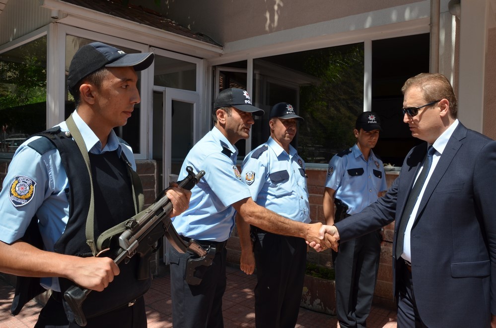 Vali Yavuz daha sonra beraberindekilerle birlikte Polisevi’ne geçerek emniyet mensuplarıyla bayramlaştıktan sonra, Polisevi’nin altında bulunan Köprübaşı Polis Merkezi Amirliği’nde nöbet tutan polislerin de bayramını tebrik etti.