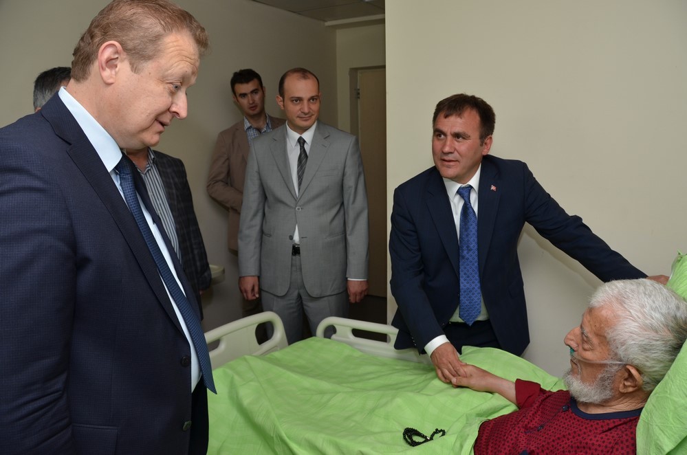 Polisevi’nden sonra Devlet Hastanesi’ne giden Vali Yavuz, hastanede yatan hastaların ve nöbette olan hastane personelinin bayramlarını kutladı.