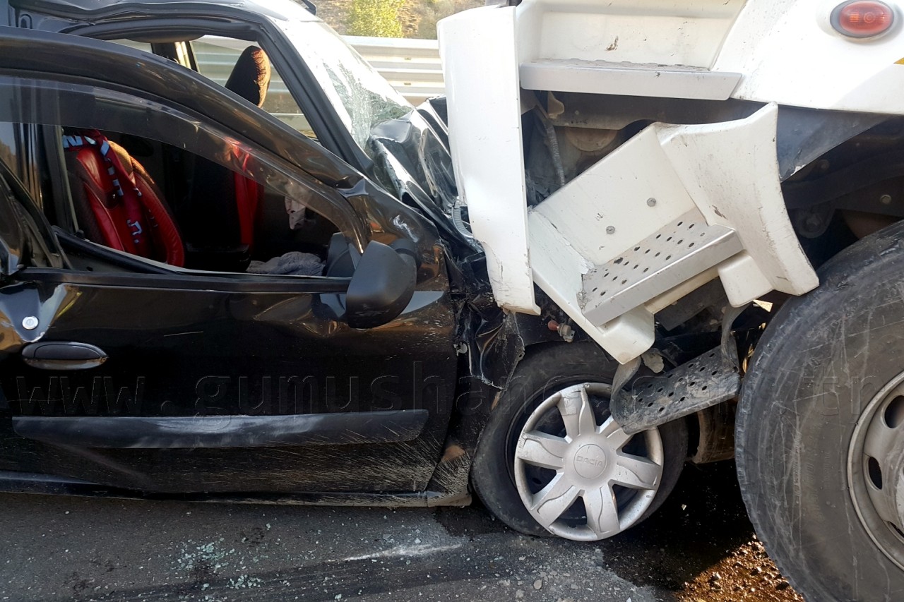 Bayburt’tan Trabzon’a gittiği öğrenilen Şenol Çoban (31) yönetimindeki 34 DN 5160 plakalı otomobil, yan yoldan karayoluna çıkış yapan 06 FA 5441 plakalı hafriyat kamyonunun altına girdi.