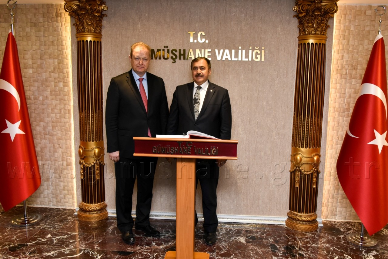 Torul temaslarının ardından Gümüşhane kent merkezine geçen Bakan Eroğlu, ilk olarak Gümüşhane Valiliğini ziyaret etti. Valilik şeref defterini imzalayan ve Vali Yücel Yavuz’dan şehirle ilgili brifing alan Bakan Eroğlu daha sonra gazetecilerle basın toplantısında bir araya geldi.