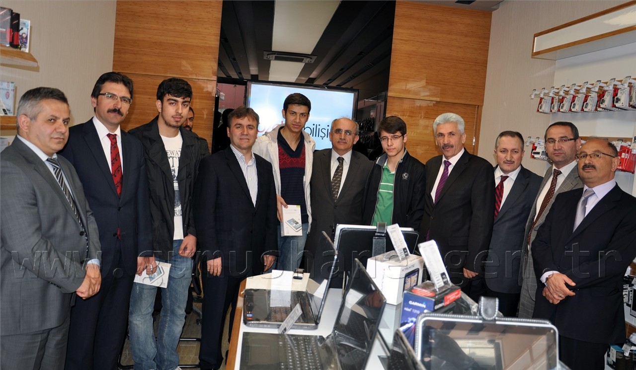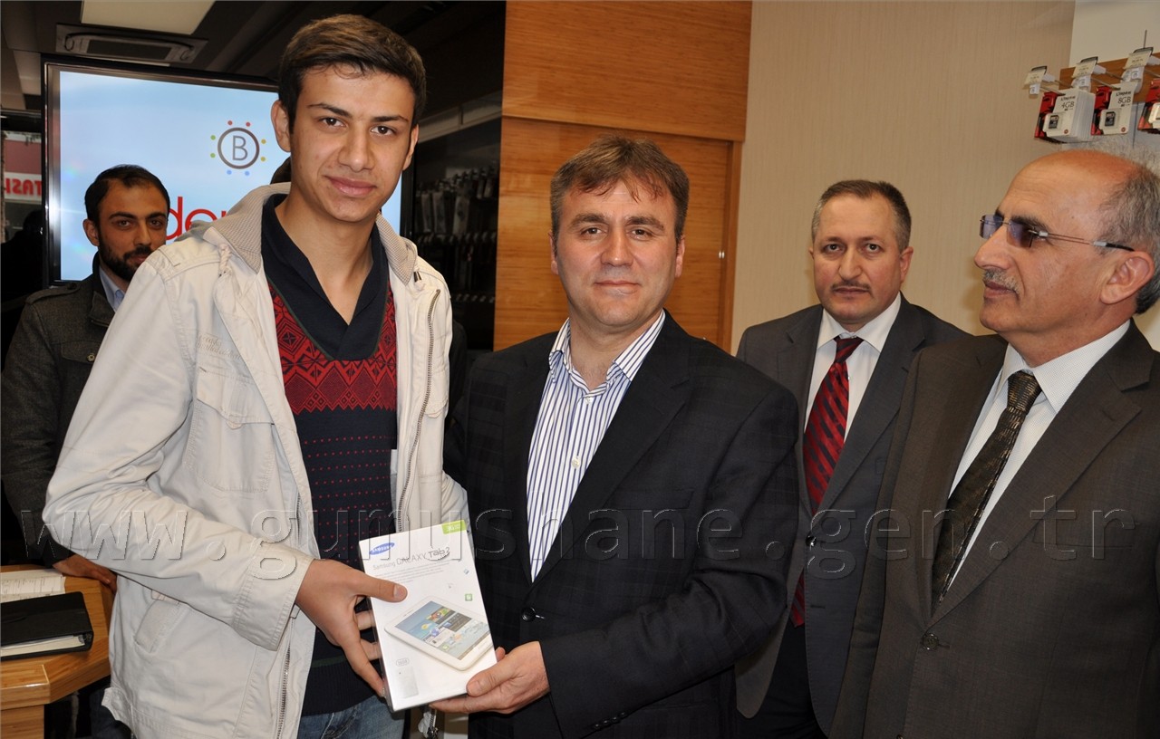 Geçtiğimiz günlerde yeni mağazasına taşınan Özden Bilişim’de gerçekleştirilen teslim törenine İl Başkanı Ercan Çimen’le birlikte Gümüşhane İl Milli Eğitim Müdürü Hızır Aktaş, Milli Eğitim Şube Müdürleri, Gümüşhane Fem Dersanesi Müdürü Nurullah Çörek ile dereceye giren öğrenciler katıldı.