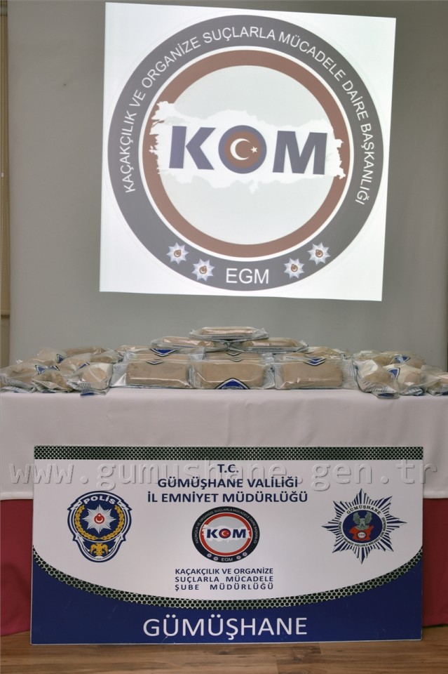 Gümüşhane Emniyeti son yılların en büyük operasyonu ile batı illerine sevk edilen 20 kilo eroinin geçişine izin vermedi.