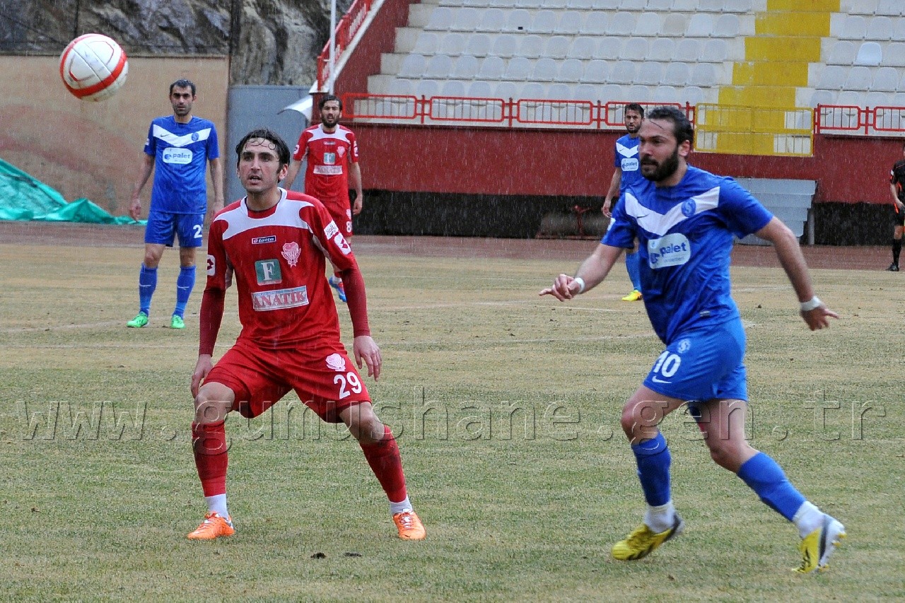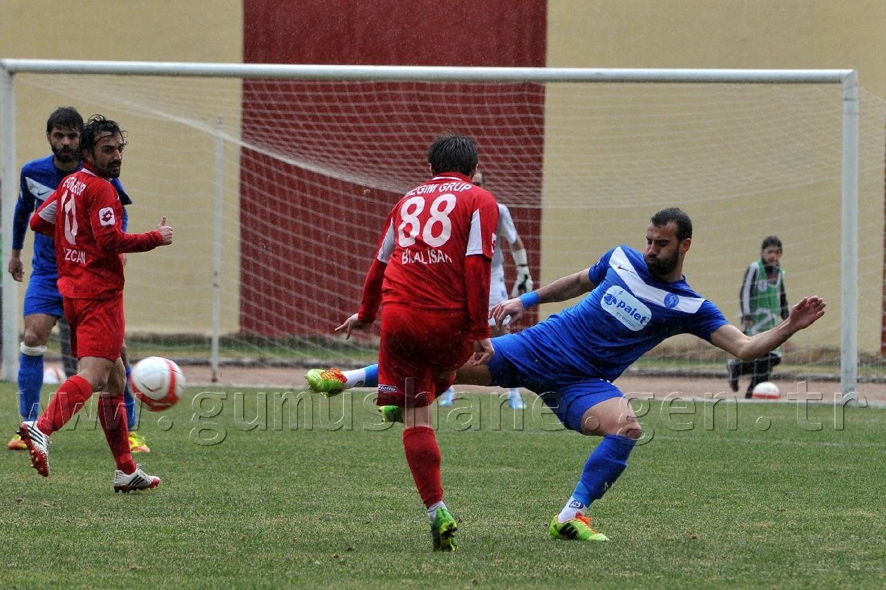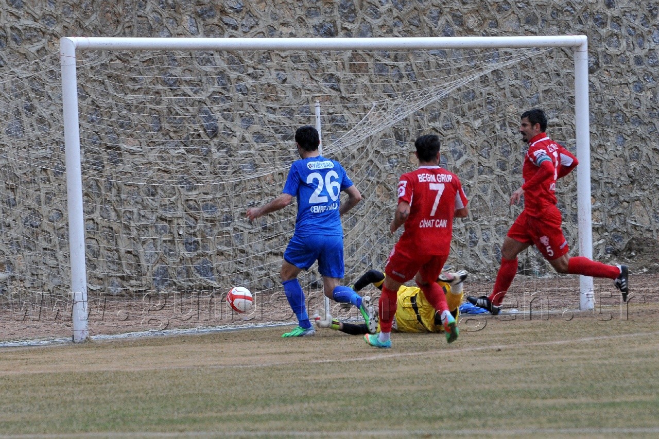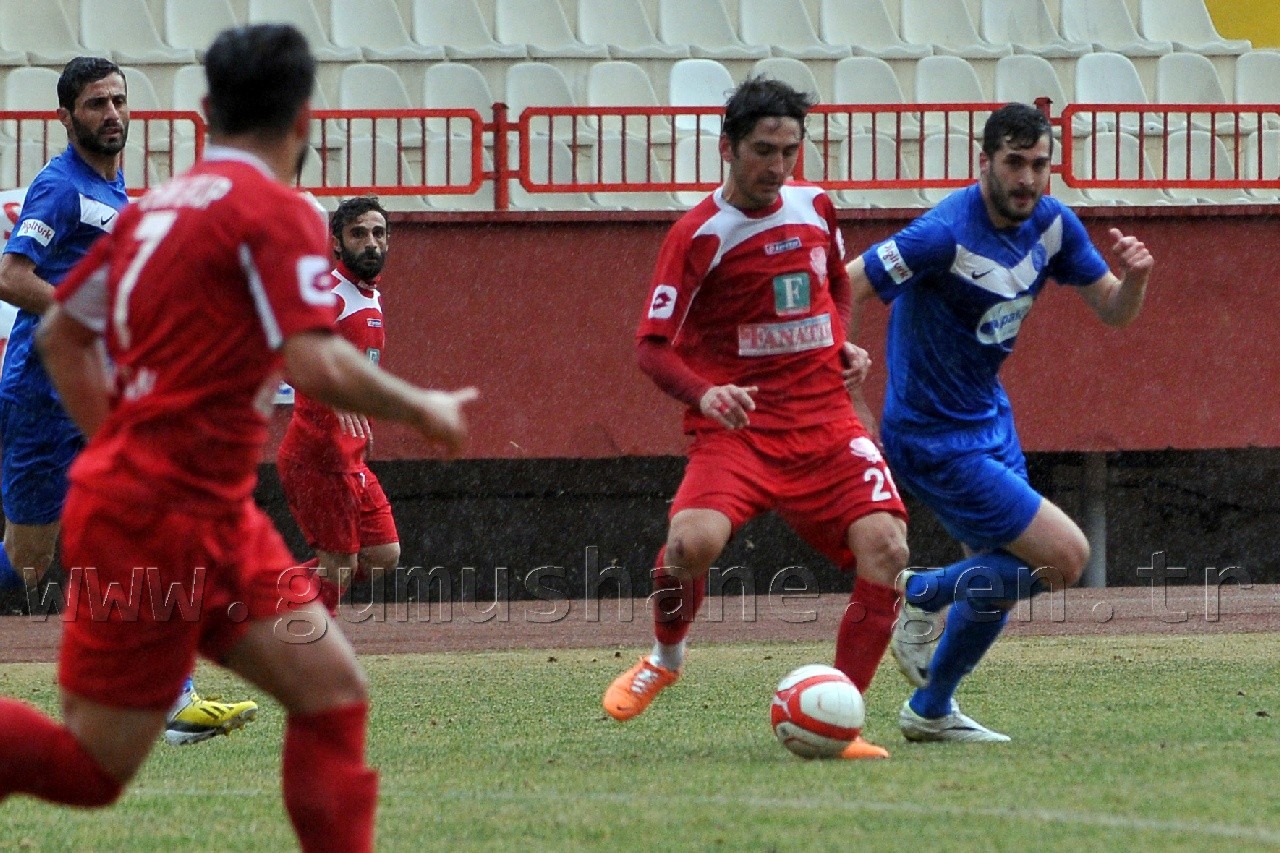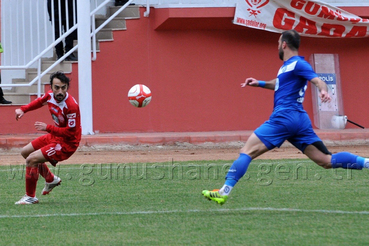 8.dakikada karşılaşmanın ilk ciddi atağı ev sahibi Gümüşhanespor’dan geldi. Sağ kanattan ani gelişen atakta Yılmaz Can driplinglerle kale çizgisine kadar indi, ortaya çevirdiği topu iyi takip eden Tekin yakın mesafeden ağlara gönderdi.