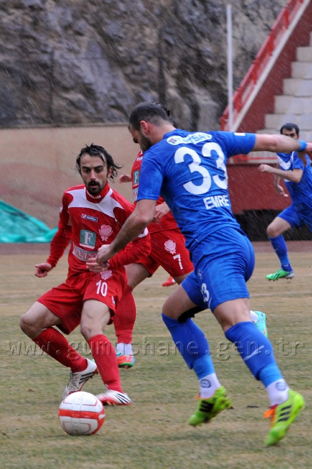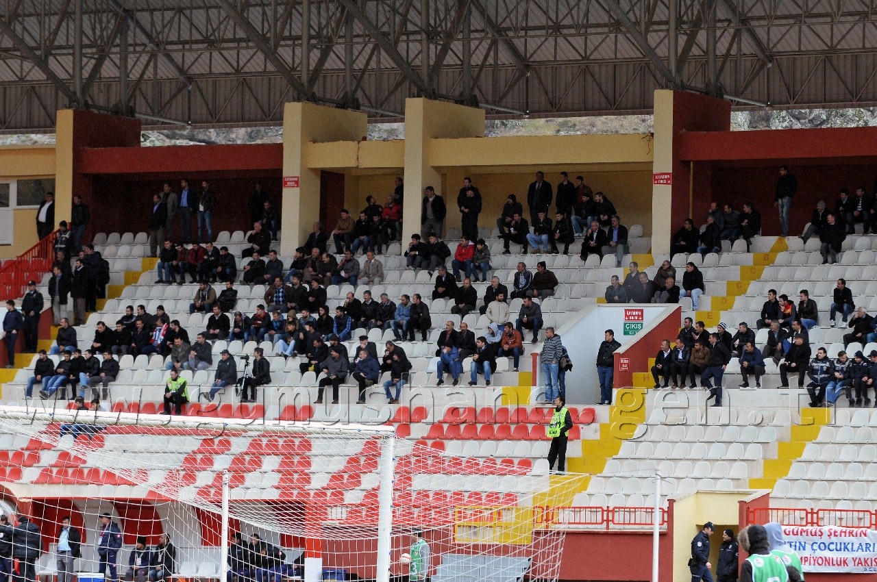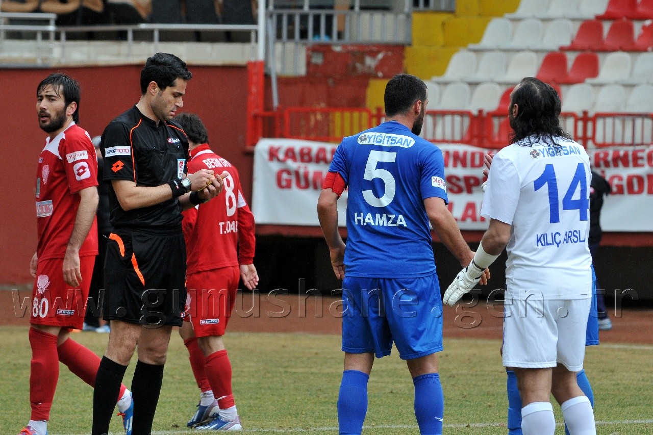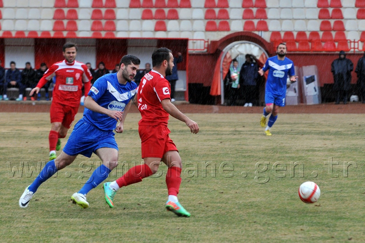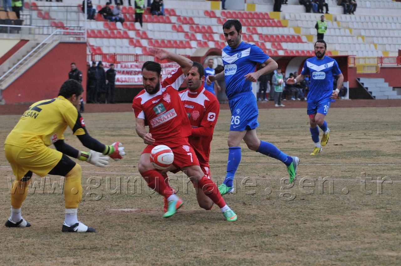 8.dakikada karşılaşmanın ilk ciddi atağı ev sahibi Gümüşhanespor’dan geldi. Sağ kanattan ani gelişen atakta Yılmaz Can driplinglerle kale çizgisine kadar indi, ortaya çevirdiği topu iyi takip eden Tekin yakın mesafeden ağlara gönderdi.