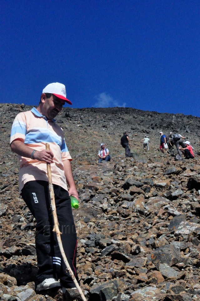 Sabah saatlerinde Gümüşhane’den hareket eden sporcular 3 saatlik araç yolculuğunun ardından Keşiş dağları eteklerine vardı. İki saatlik bir yürüyüşün ardından 2 bin 900 metre rakımlı göller bölgesine ulaşıp yemek molası verdikten sonra zirve tırmanışına başlayan sporcular kaygan çakıl taşlarından oluşan güzergahı 4 saatlik zorlu bir tırmanış ile kat ederek 3 bin 549 metre rakımlı zirveye ulaştı ve burada hatıra fotoğrafı çektirdi.