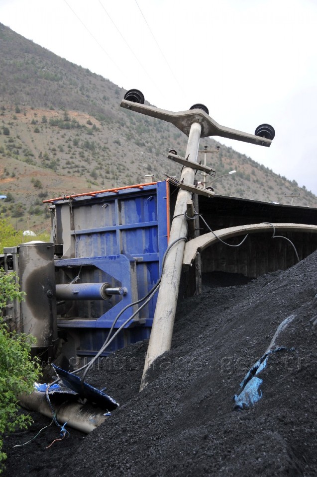 Olay anında yol kenarındaki bulunan elektrik direğine de çarpan tırın kasasındaki kömür yolun bir şeridini komple kapattı. Elektrik direğinin kırıldığı ve enerji nakil hatlarının da koptuğu kazada, sürücü Küçük yara almadan kurtulurken tonlarca kömür kara yolunu bir süre ulaşıma kapattı.