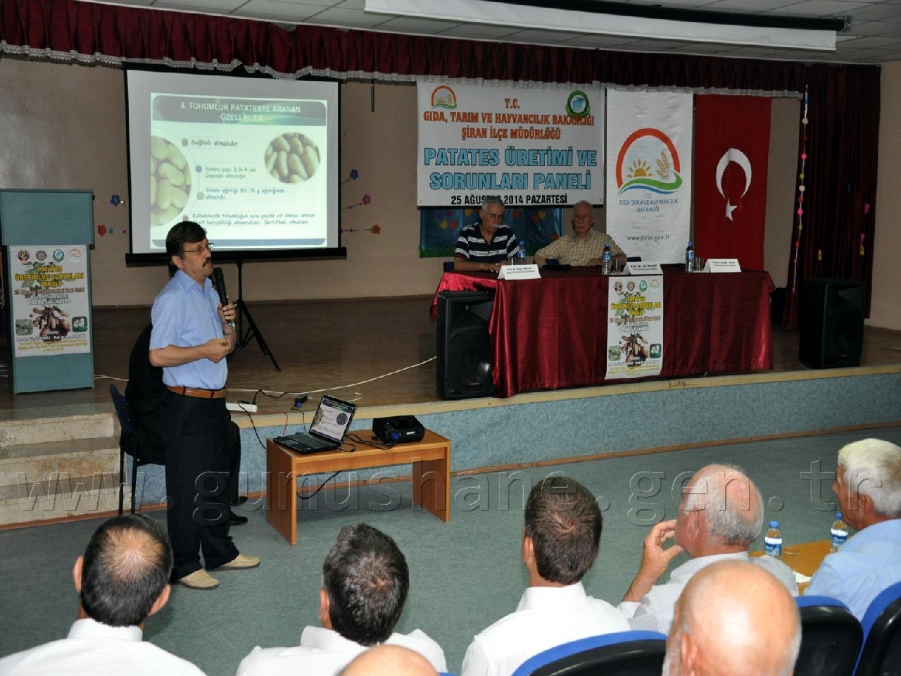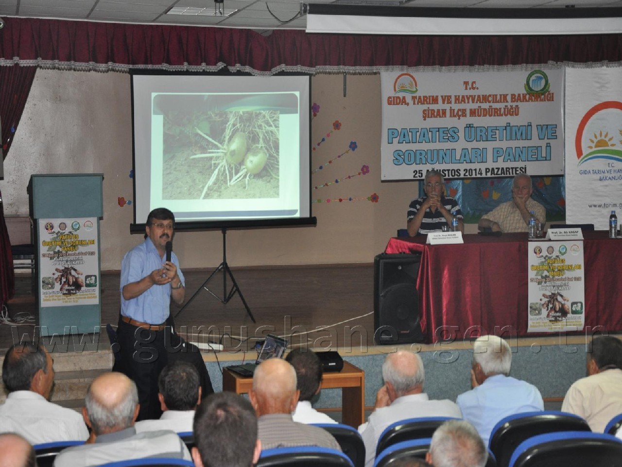 Panele, Şiran, Kelkit ve Köse ilçelerindeki üreticiler katılırken, üreticiler patates tarımı, patateste tohumluk ve hasat, gübreleme, sulama, depolama ve pazarlama, patates hastalıkları ve zararlıları konularında panelistlere çeşitli sorular yöneltti.