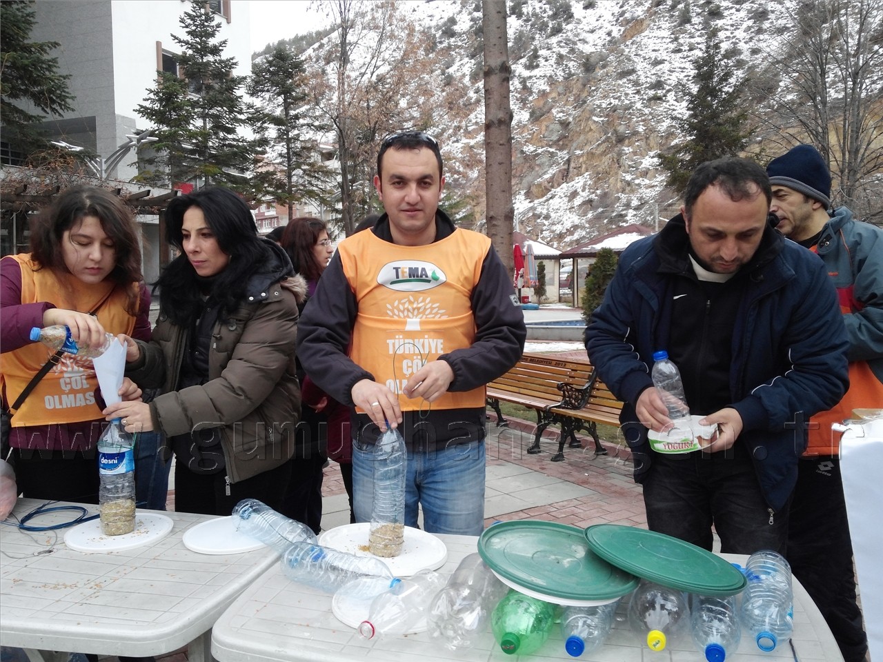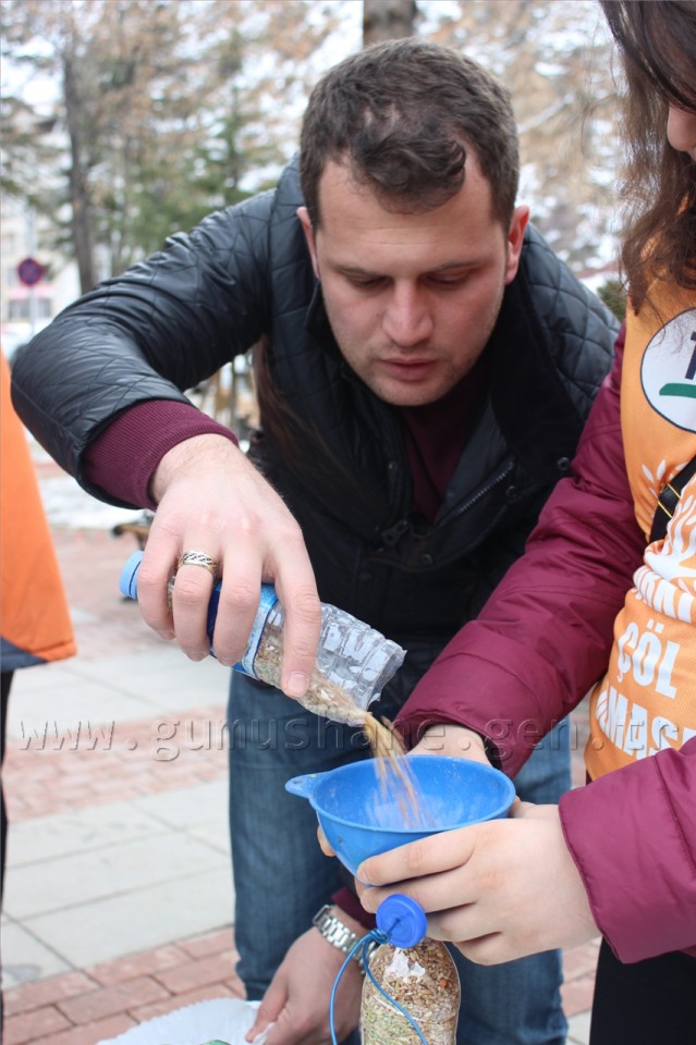TEMA Vakfı Gönüllüleri, GÜÇED üyeleri, Gümüşhane Gençlik Merkezi personeli ve öğrencileri ile ilgi duyan vatandaşların katıldığı etkinlikte, yapılan 80 adet kuş yemliği yoldan geçen vatandaşlara herhangi bir karşılık beklenmeden dağıtılarak bahçelerdeki veya köylerdeki ağaçlara asılması talep edildi.