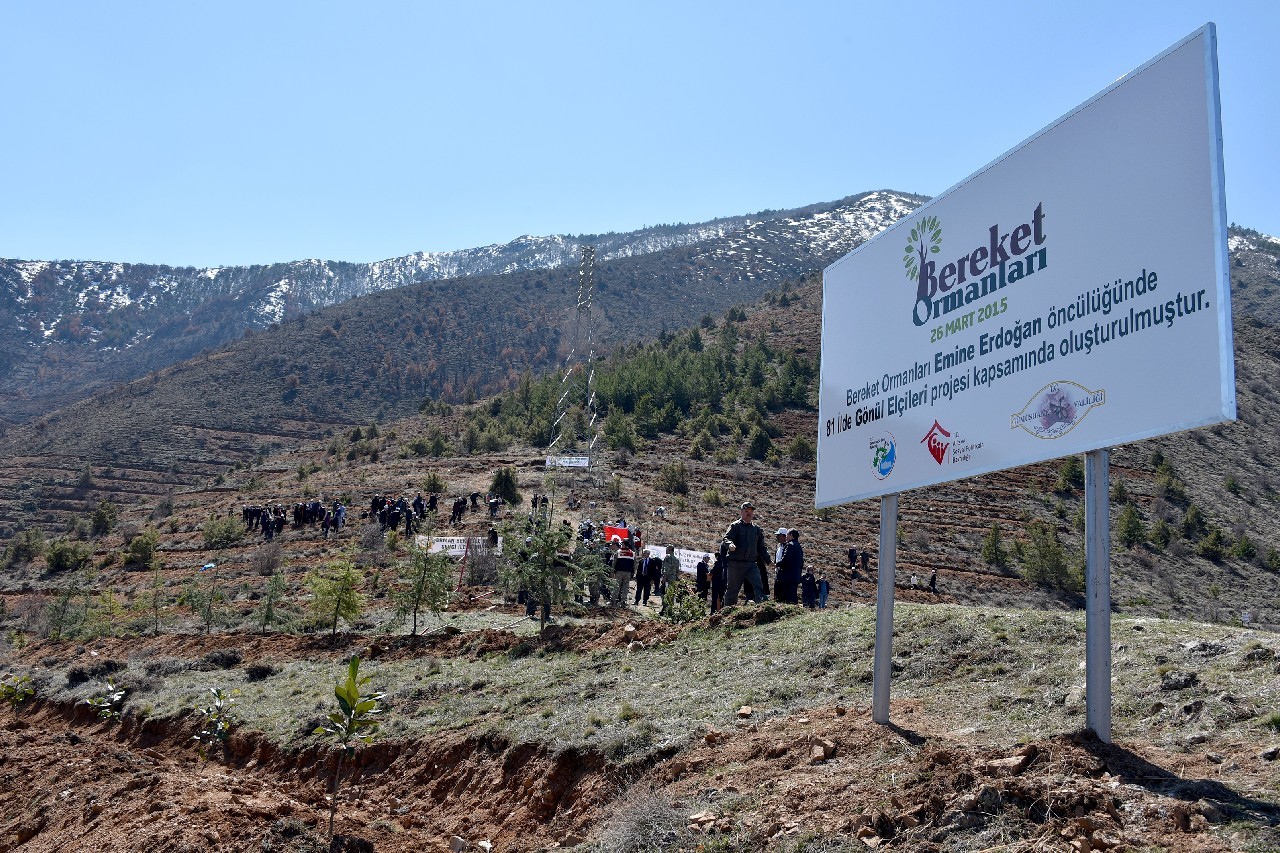 Gümüşhane’de Cumhurbaşkanı Recep Tayyip Erdoğan'ın eşi Emine Erdoğan öncülüğünde 81 ilde Gönül Elçileri projesi kapsamında oluşturulan 'Bereket Ormanına' sarıçam, akasya, akçaağaç ve ıhlamurdan oluşan 20 bin fidan dikildi.