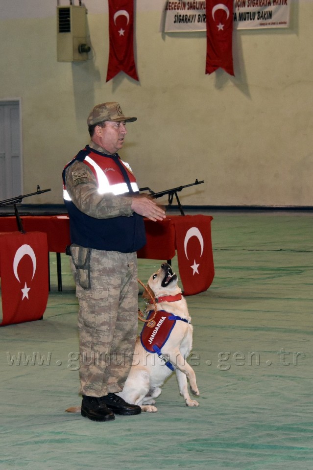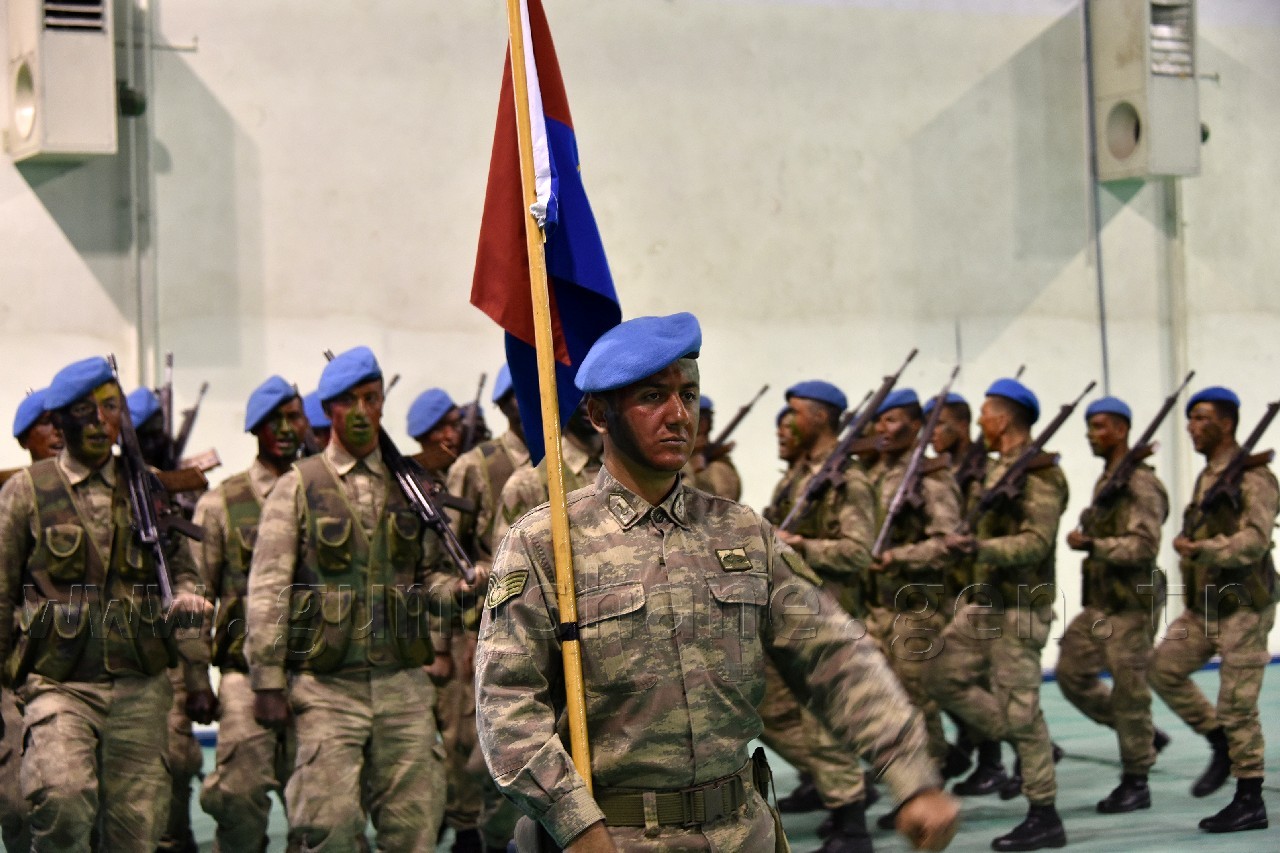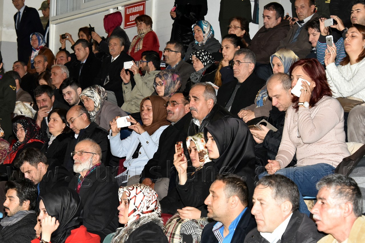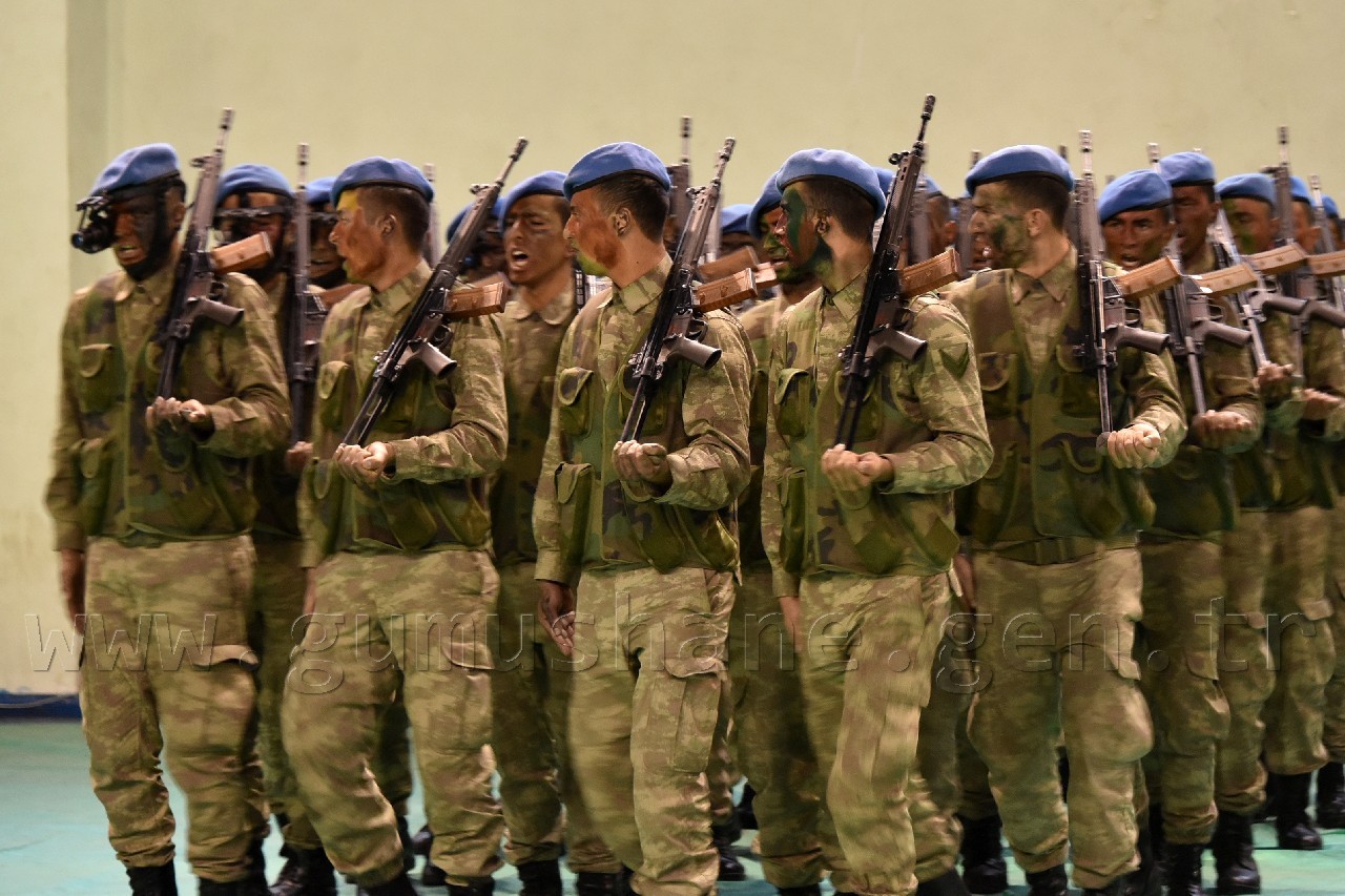 Törende daha sonra labrador cinsi Jandarma mayın arama köpeği Ezen’in gösterisi davetliler tarafından ilgiyle izlenirken, komando bölüğü ve yemin eden askerlerin gerçekleştirdiği tören geçişi sırasında ailelerin duygusal anlar yaşadığı ve bu anı cep telefonları vasıtasıyla ölümsüzleştirdiği gözlendi.