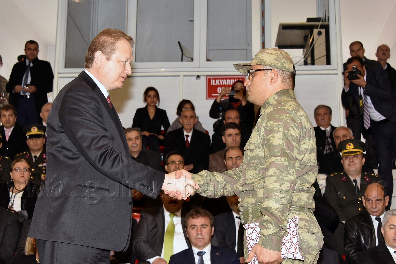 Yemin eden kısa dönem erler adına Zeynel Kesici'nin konuşması ve Hulusi Çığlık'ın "Yemin Ederken" adlı şiirini seslendirmesinin ardından Gümüşhane İl Jandarma Komutanlığına ilk katılan kısa dönem er Muhammed Ali Başol'a ödülü Vali Yücel Yavuz tarafından verildi.