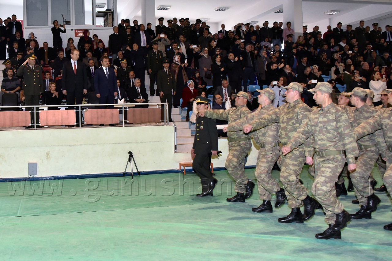 Aydın Doğan Spor Salonu'nda gerçekleştirilen törene Vali Yücel Yavuz, eşi Şengül Yavuz, İl Jandarma Komutanı Albay Erdal Eren, Belediye Başkanı Ercan Çimen, Cumhuriyet Başsavcısı Said Serhan Hançerkıran, Vali Yardımcıları İsmail Özkan, Şenol Turan, Gümüşhane Üniversitesi Rektörü Prof. Dr. İhsan Günaydın, İl Özel İdaresi Genel Sekreteri Ekrem Akdoğan, ilçe ve belde belediye başkanları, kamu kurum müdürleri, yemin edecek askerlerin aileleri ve vatandaşlar katıldı.