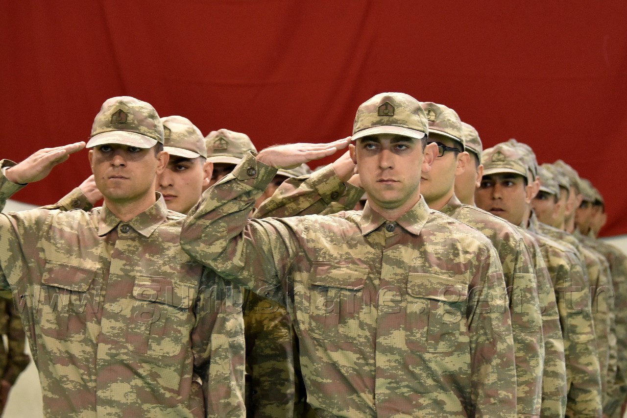 Albay Eren'in konuşmasının ardından askerler, Türk Bayrağı üzerine ellerini koyarak yemin etti.