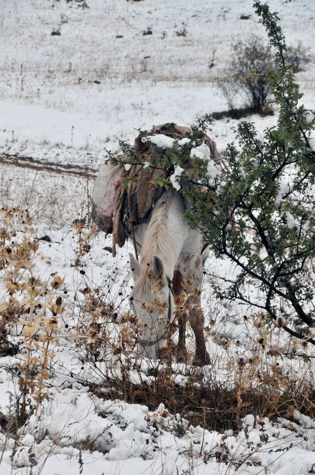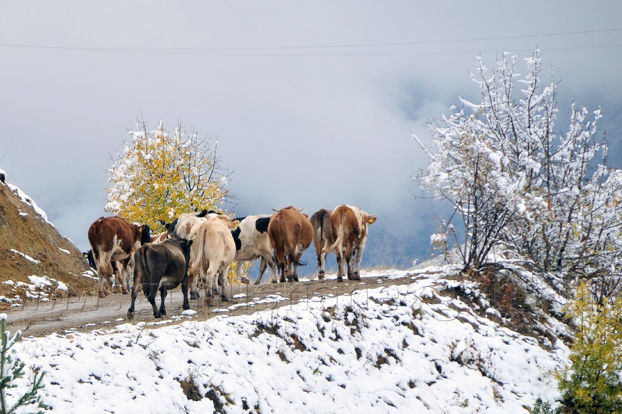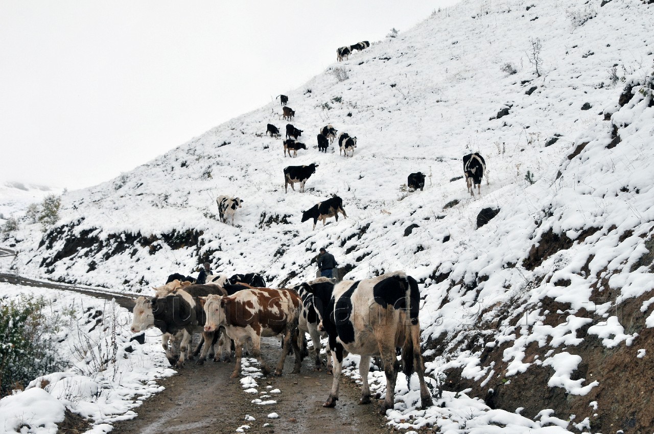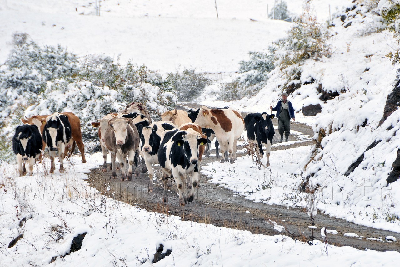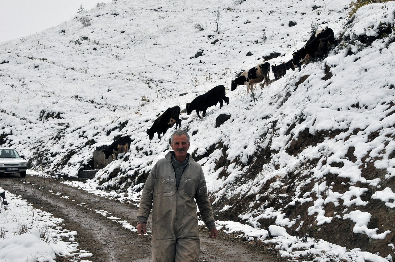 Merkeze bağlı Dörtkonak köyü yaylasında yaklaşık 6 aydır 100’den fazla büyükbaş hayvanları ile duran 4 çiftçi, dün gece gerçekleşen kar yağışının ardından hayvanların yem sorunu yaşamaması için tekrar köye döndü.