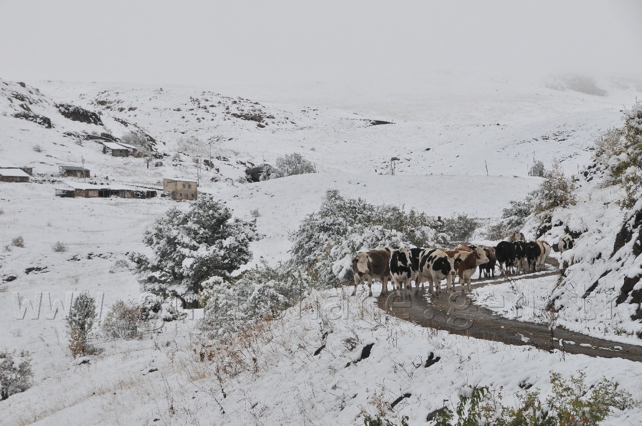 Dün akşama doğru başlayan yağışın sabaha kadar devam ettiğini ve sabah kalktıklarında 10-15 santimetre yüksekliğine ulaştığını ifade eden yayla sakinlerinden Temel Çetin, hayatlarında ilk kez Ekim ayında yağan karla birlikte yayladan inmek zorunda kaldıklarını söyledi. Geçtiğimiz Mayıs ayında yaylaya çıktıklarını ifade eden Çetin, 100’ün üzerinde büyükbaş hayvan bulunduğunu belirterek, yaylanın yüksek kesimlerinde kar kalınlığının daha fazla olduğunu sözlerine ekledi.