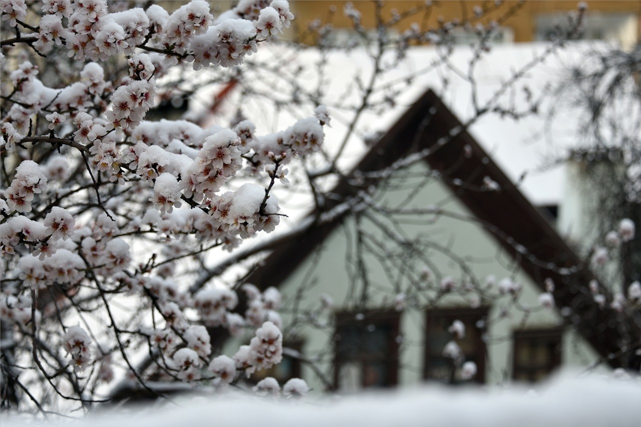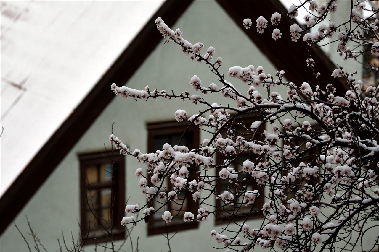 Sabahın erken saatlerinde kalkan vatandaşlar şehrin tamamını örten az miktardaki beyaz örtüyle karşılaşırken, çiçeklerini açan ağaçların üzerinde ki karlar seyrine doyumsuz manzaraların çıkmasına neden oldu.