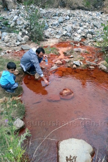 Köyün girişindeki Eski Hanlar mevkiinde ve Gümüşhane-Trabzon karayoluna 2 kilometre mesafede bulunan maden suyu yaz aylarında soğuk akarken, kış aylarında da sıcaklığını koruyor. Yanıbaşından akan dereye dökülen maden suyu bölgede kırmızı renkli bir görüntü oluşturuyor.
