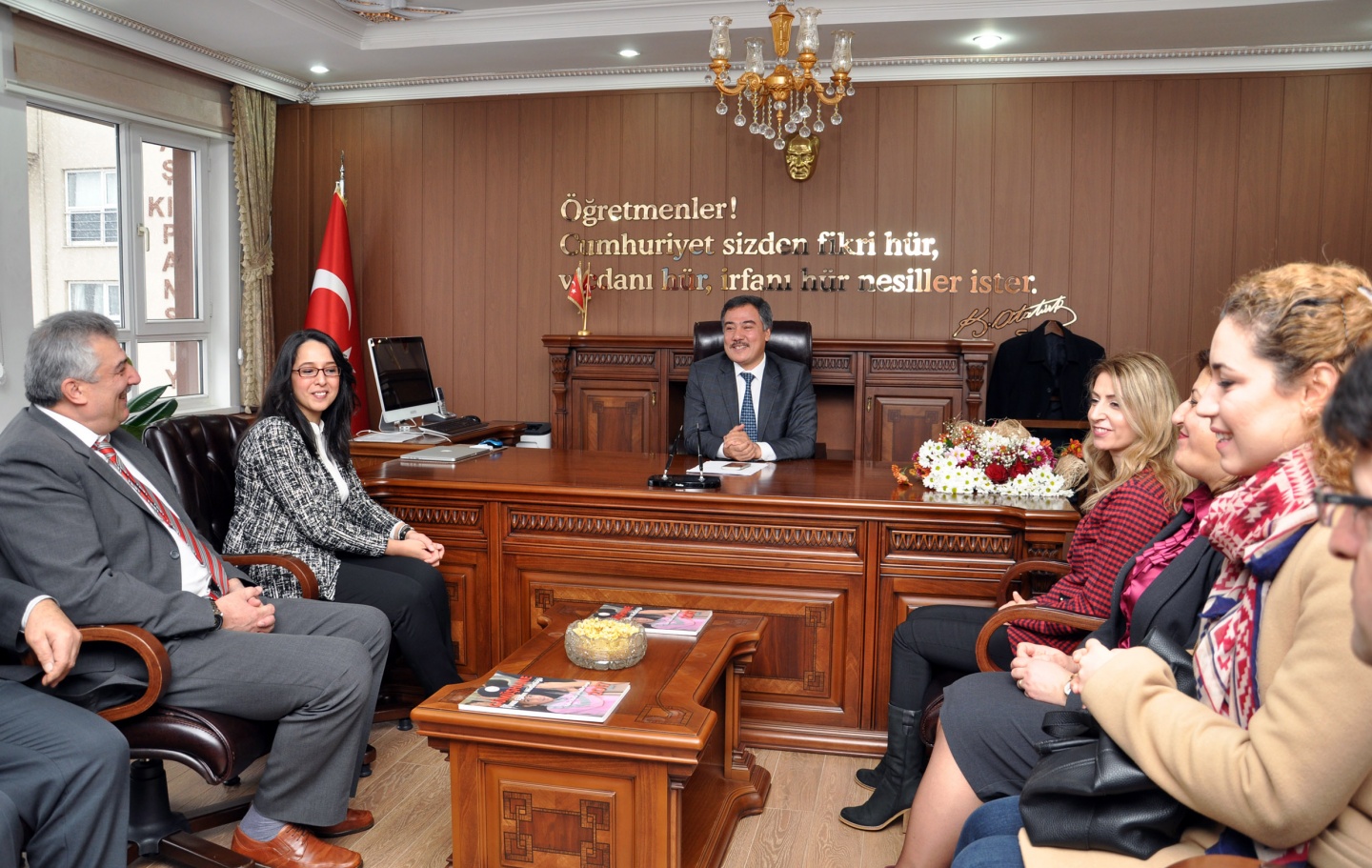 Doğan’a buket sunan misafirler öğretmenler gününü kutlarken, İl Milli Eğitim Müdürü Seydi Doğan ziyaretten duyduğu memnuniyeti belirterek, okul müdürleri ve öğretmenlere teşekkür etti.