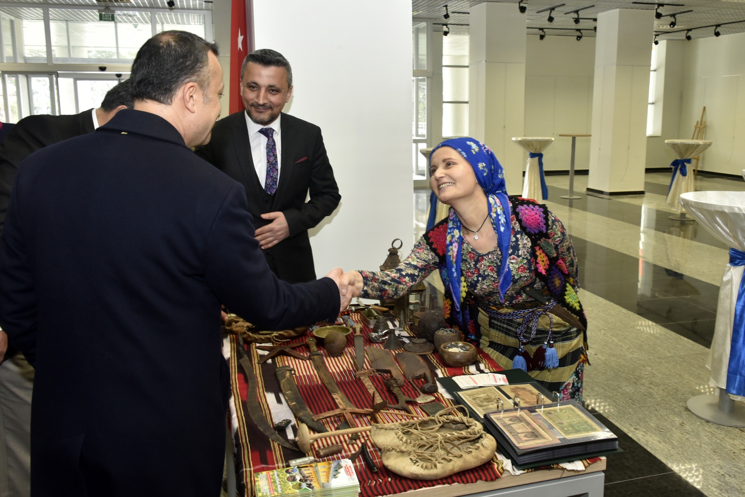 Gümüşhane Üniversitesi Kongre Merkezinde gerçekleştirilen programın başlangıcında fuaye alanında kentin tarihi ve kültürel öğelerinin yer aldığı sergi gezildi. Resimlerin de yer aldığı sergide pestil ve kömeden yapılan gelinlik incelendi.