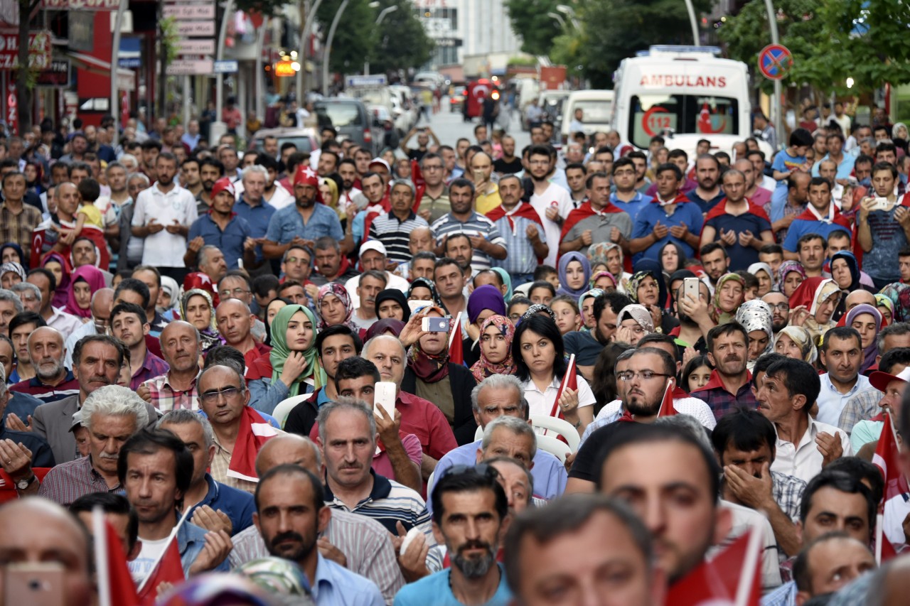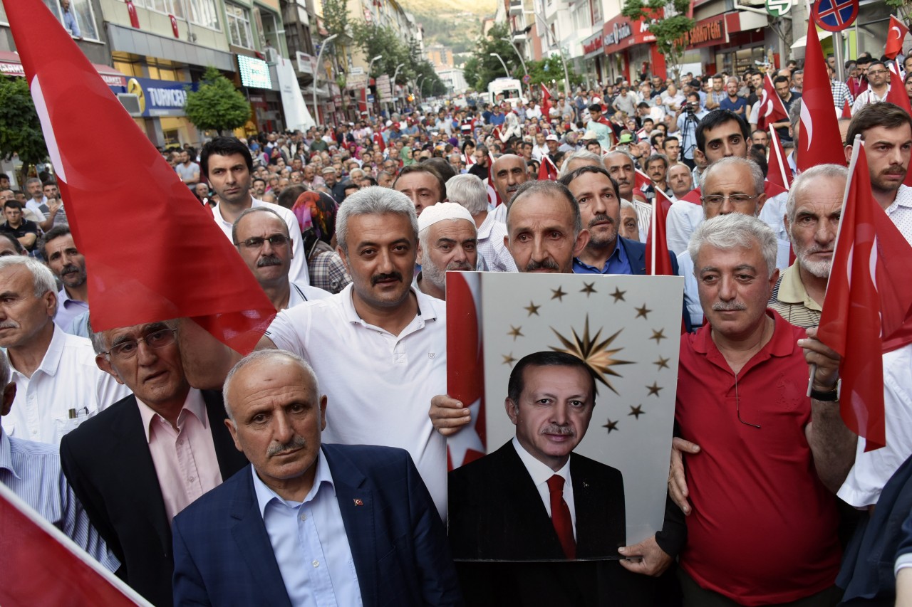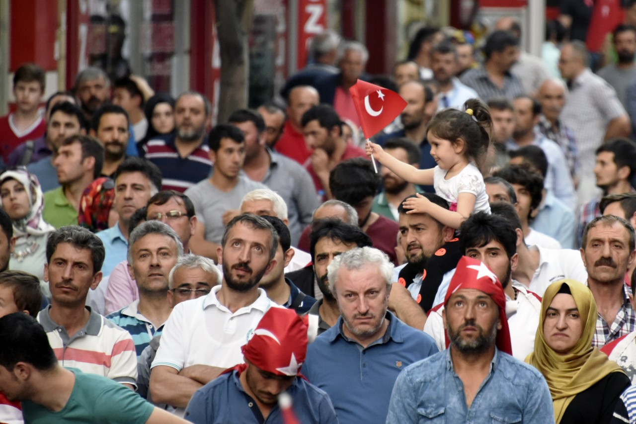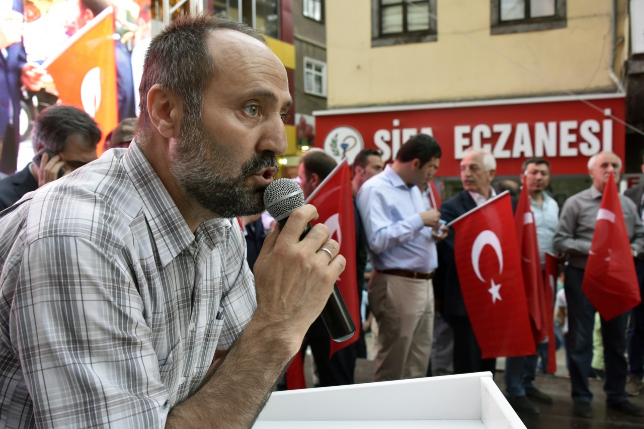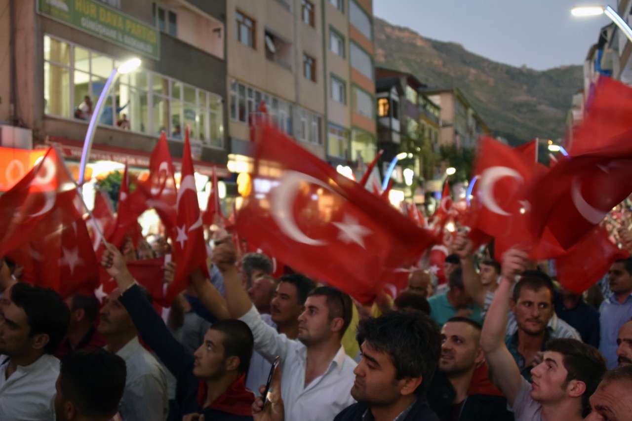 Daha sonra şehrin kanaat önderleri ellerinde Türk bayraklarıyla platform üzerine çıkarak alanı dolduran vatandaşları coşkulu bir şekilde selamladı. Program İstiklal Marşı’nın okunması, Kur’an-ı Kerim tilaveti ve İl Müftüsü Ercan Aksu’nun yaptığı dua ile başladı.