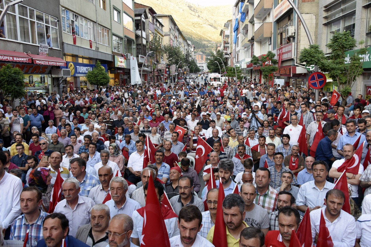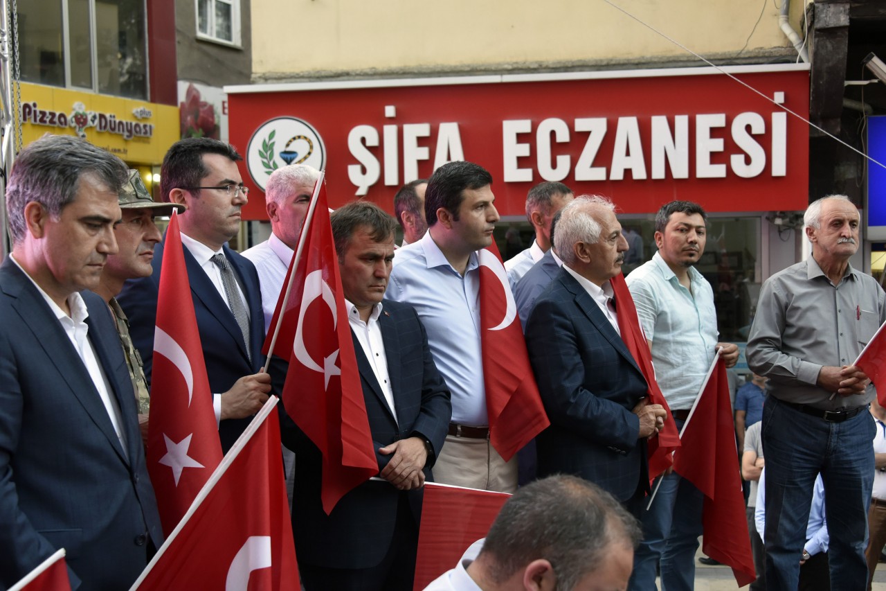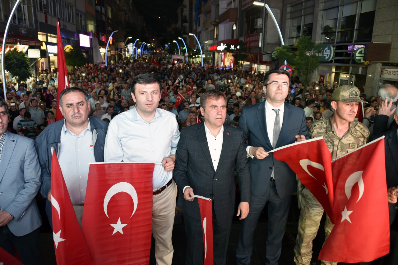 Gümüşhane’de Belediye Başkanlığının organizasyonunda siyasi partiler, sivil toplum örgütleri, bürokrasi ve halkın geniş katılımıyla “Milli İradeye Sahip Çıkma” etkinliği düzenlendi.