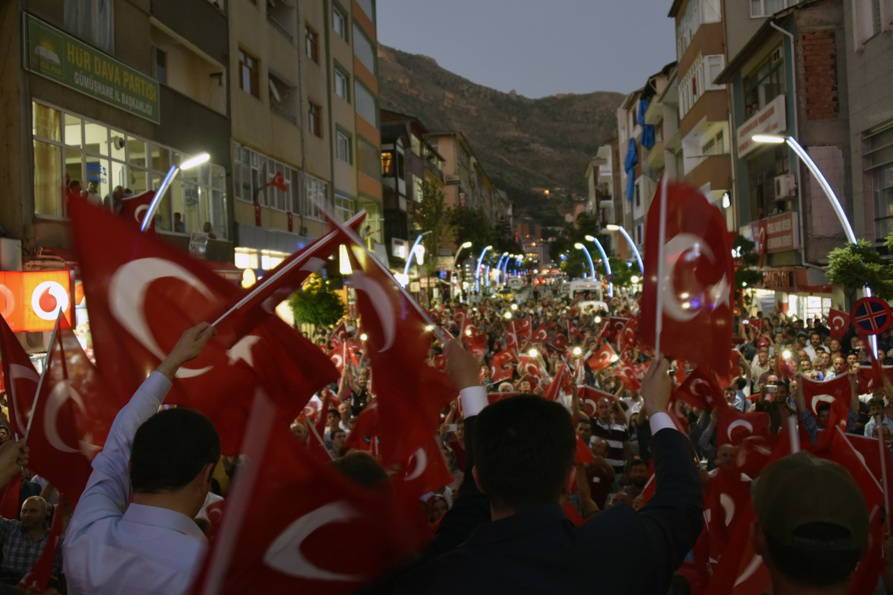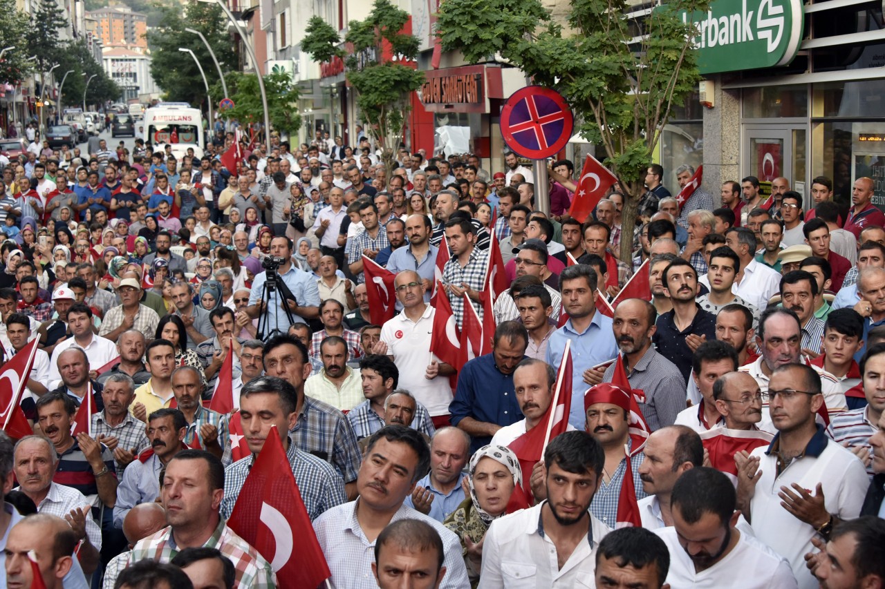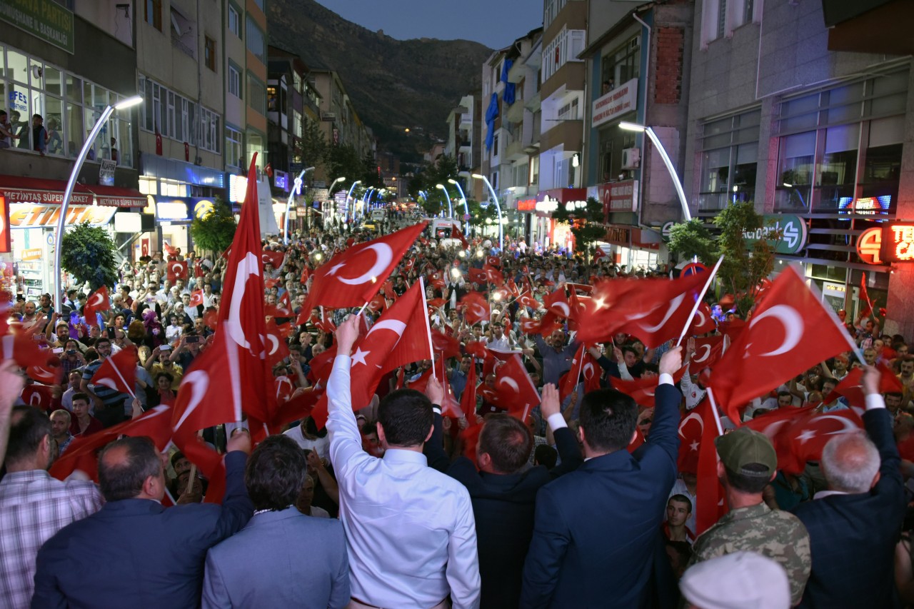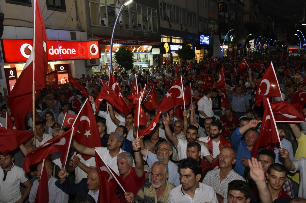 Gümüşhane’de Belediye Başkanlığının organizasyonunda siyasi partiler, sivil toplum örgütleri, bürokrasi ve halkın geniş katılımıyla “Milli İradeye Sahip Çıkma” etkinliği düzenlendi.