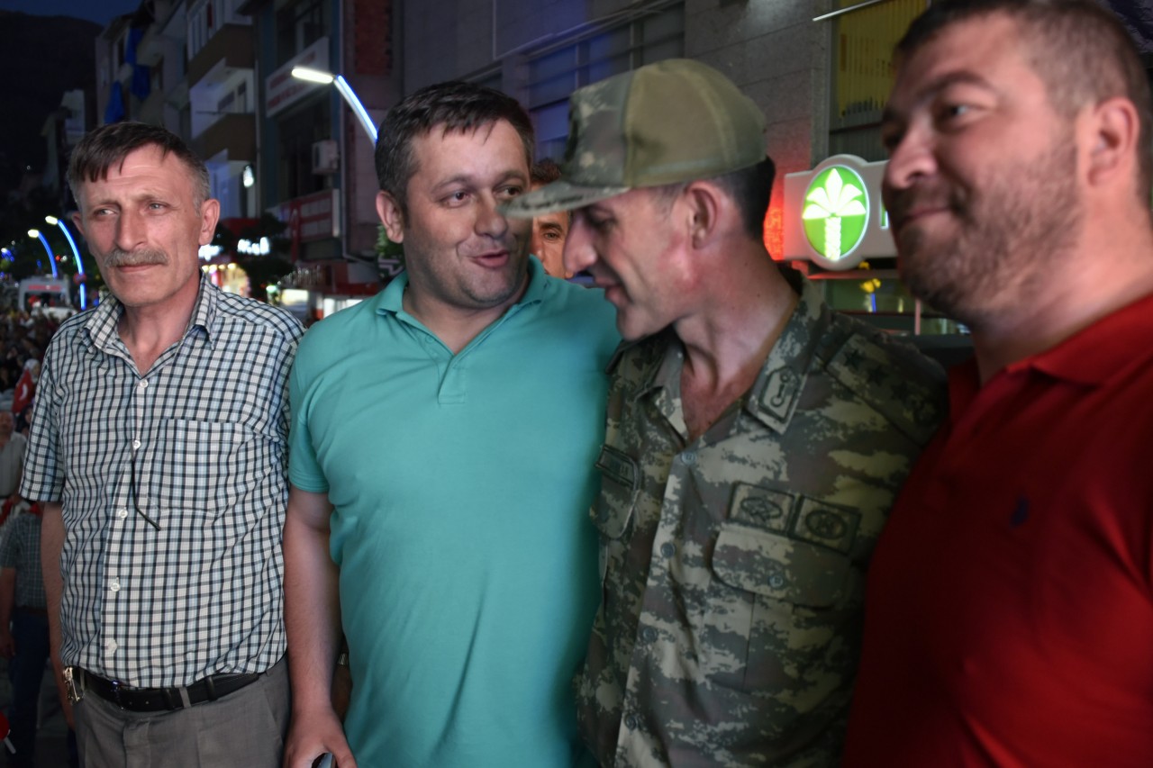 Yapılan konuşmaların ardından Türk bayraklarının dakikalarca dalgalandırıldığı alanda sabaha kadar devam edecek olan nöbet programı başladı. Program boyunca Belediye Başkanlığı tarafından Belediye ve halk otobüsleri ücretsiz olarak vatandaşların kullanıma sunulurken, ayrıca yemek ikramında da bulunuldu.