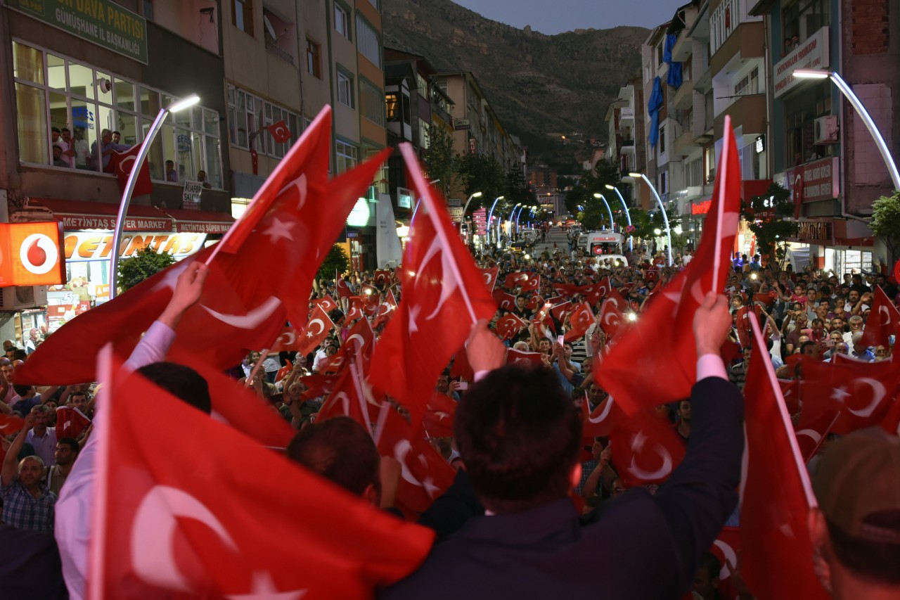 Gümüşhane Valisi Okay Memiş ise konuşmasında dün akşam Türk demokrasisinin bir darbe girişimine maruz kaldığını fakat bu darbe girişimine rağmen Vali, Milletvekili, Garnizon Komutanı, Belediye Başkanı, sivil toplum örgütleri, yerel yöneticiler ve herkesin anayasal nitelikler altında Cumhurbaşkanı, Başbakan ve hükümetin emrinde olduklarını açık yüreklilikle ifade ettiklerini söyledi.